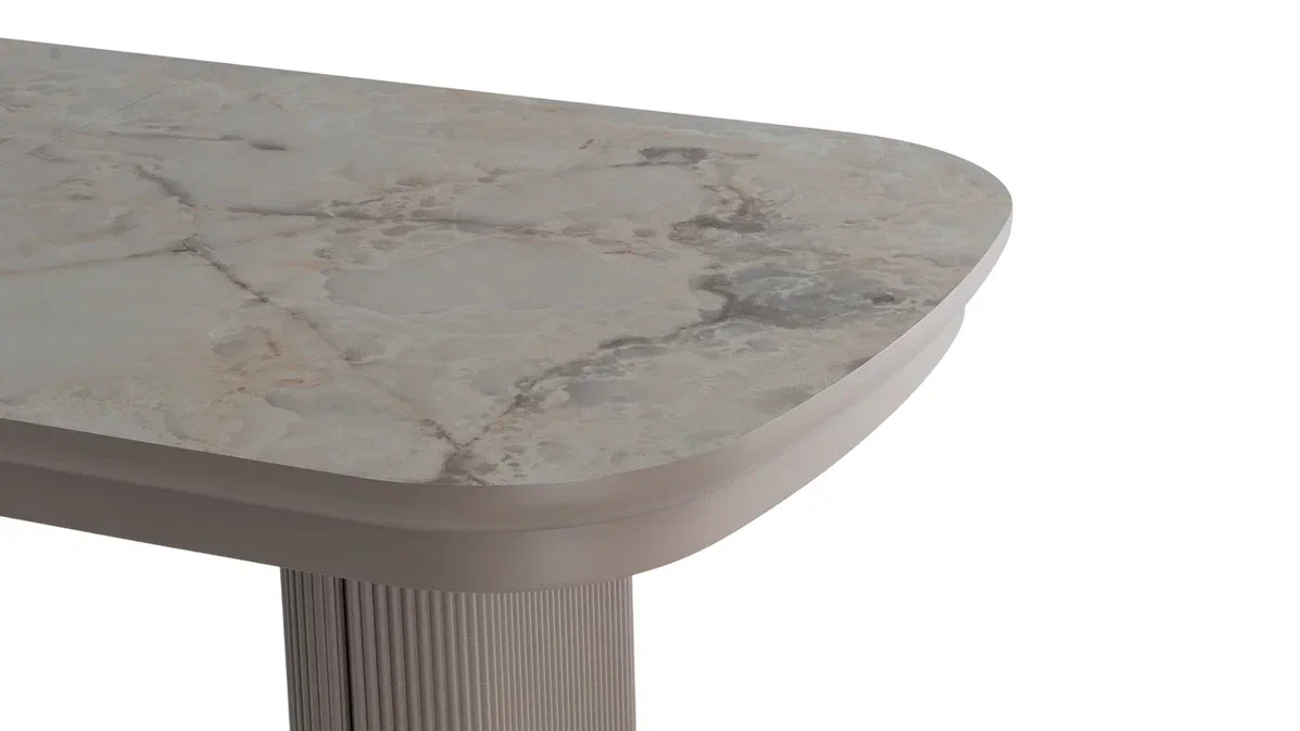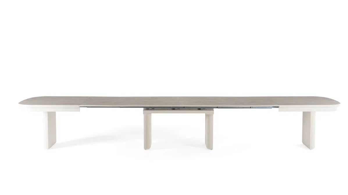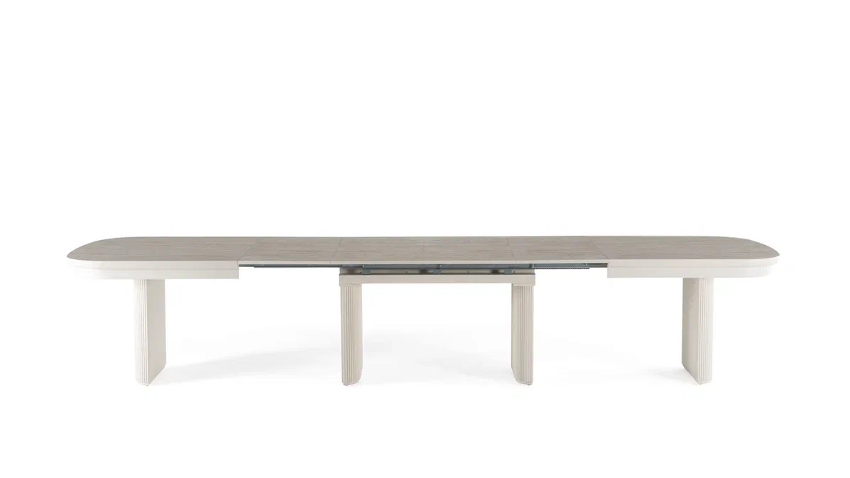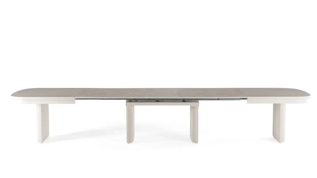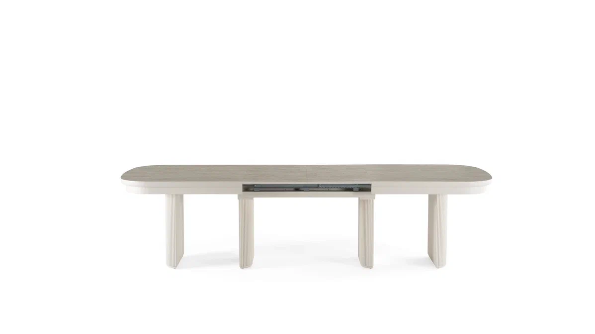 Šis stilingas ir funkcionalus valgomojo stalas ASIA – puikus pasirinkimas tiems, kurie vertina erdvę, patogumą ir galimybę prisitaikyti prie skirtingų poreikių. Stalas yra išskleidžiamas net iki 500 cm, todėl lengvai talpina didesnę svečių kompaniją. Papildomos dalys po 50 cm leidžia lanksčiai reguliuoti ilgį pagal situaciją.