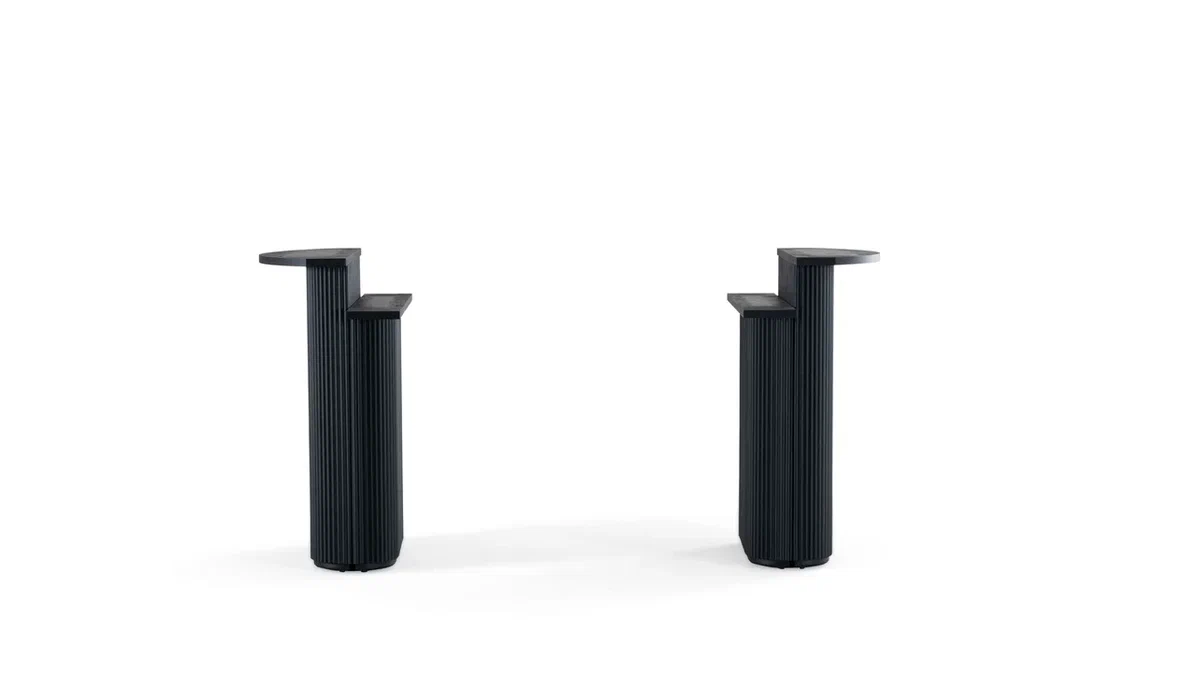 Dvi stambios medinės kojos užtikrina konstrukcijos stabilumą ir solidų vizualinį akcentą, puikiai derantį tiek moderniame, tiek klasikiniame interjere.