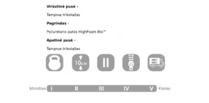 | Čiužinio savybės | Ortopedinės savybės, Pralaidus orui, Putų poliuretanas, Vakuumo pakuotėje |