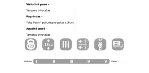 | Čiužinio savybės | Ortopedinės savybės, Pralaidus orui, Putų poliuretanas, Vakuumo pakuotėje |