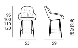 Ši minimalistinio dizaino baro kėdė išsiskiria lengvumu ir subtilia elegancija. Plonos, bet tvirtos metalinės kojos suteikia baldui modernumo ir vizualinio lengvumo pojūtį, o jų spalvą galite pasirinkti pagal savo interjero spalvinę gamą. Platus audinių pasirinkimas leidžia sukurti norimą estetiką – nuo subtilaus klasikinio iki drąsaus šiuolaikiško įvaizdžio. Ergonomiška sėdimoji dalis užtikrina komfortą, todėl baro kėdė puikiai tinka tiek valgomojo zonai, tiek stilingoms viešosioms erdvėms, kuriose svarbus patogumas ir estetiška išvaizda.
