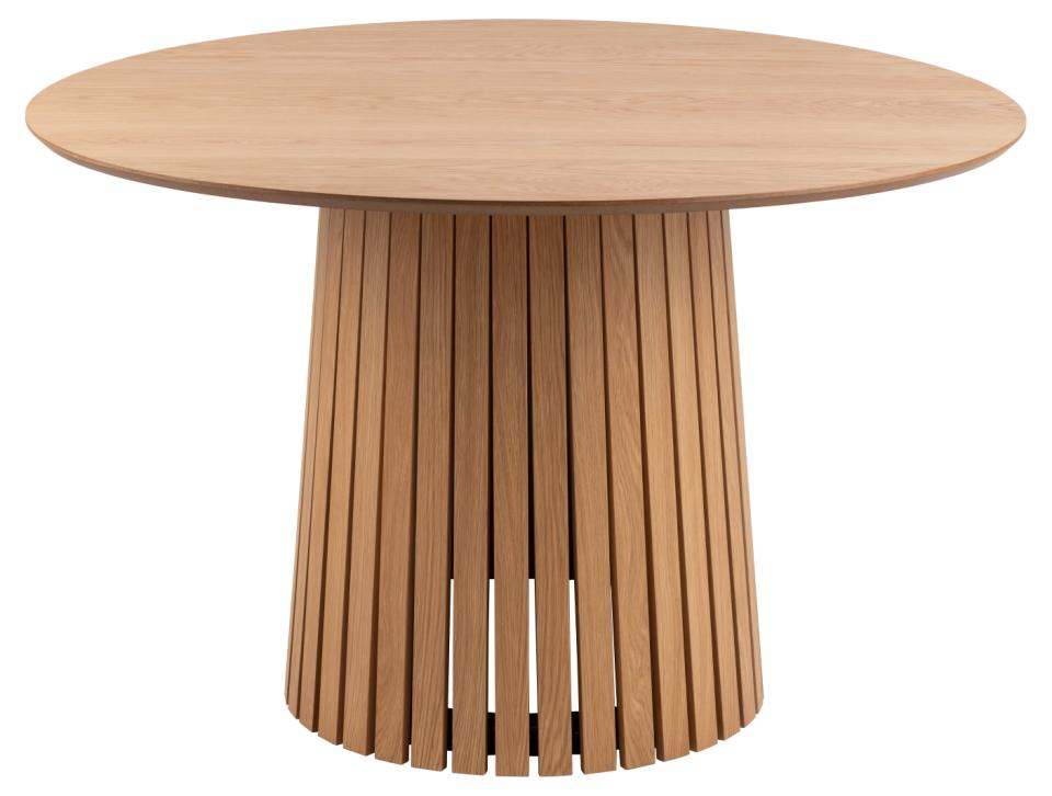 Chris apvalus valgomojo stalas, pagamintas iš baltai pigmentuotos alyvuotos ąžuolo faneruotės su lamelių priekine dalimi, Ø120×75 cm