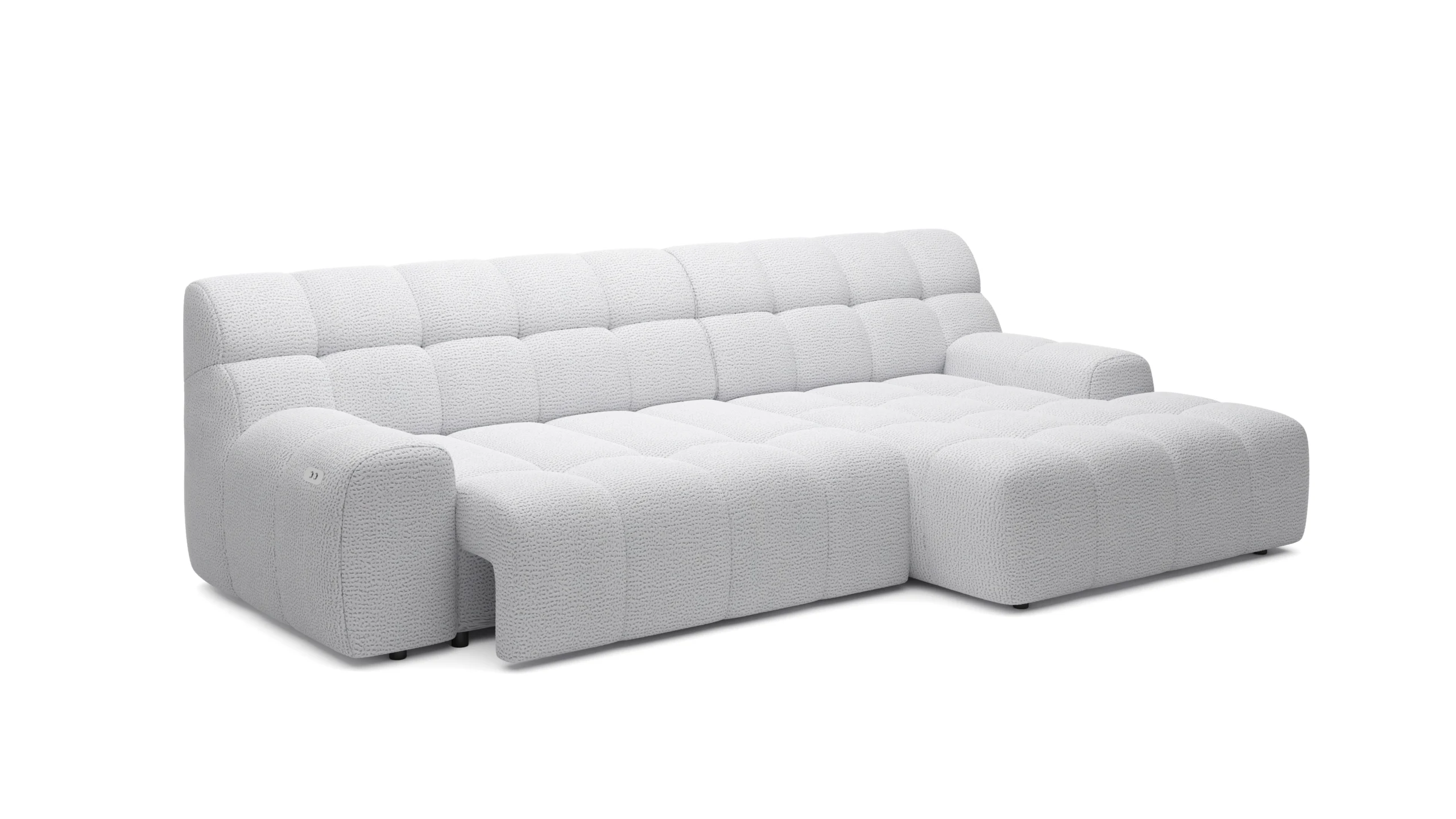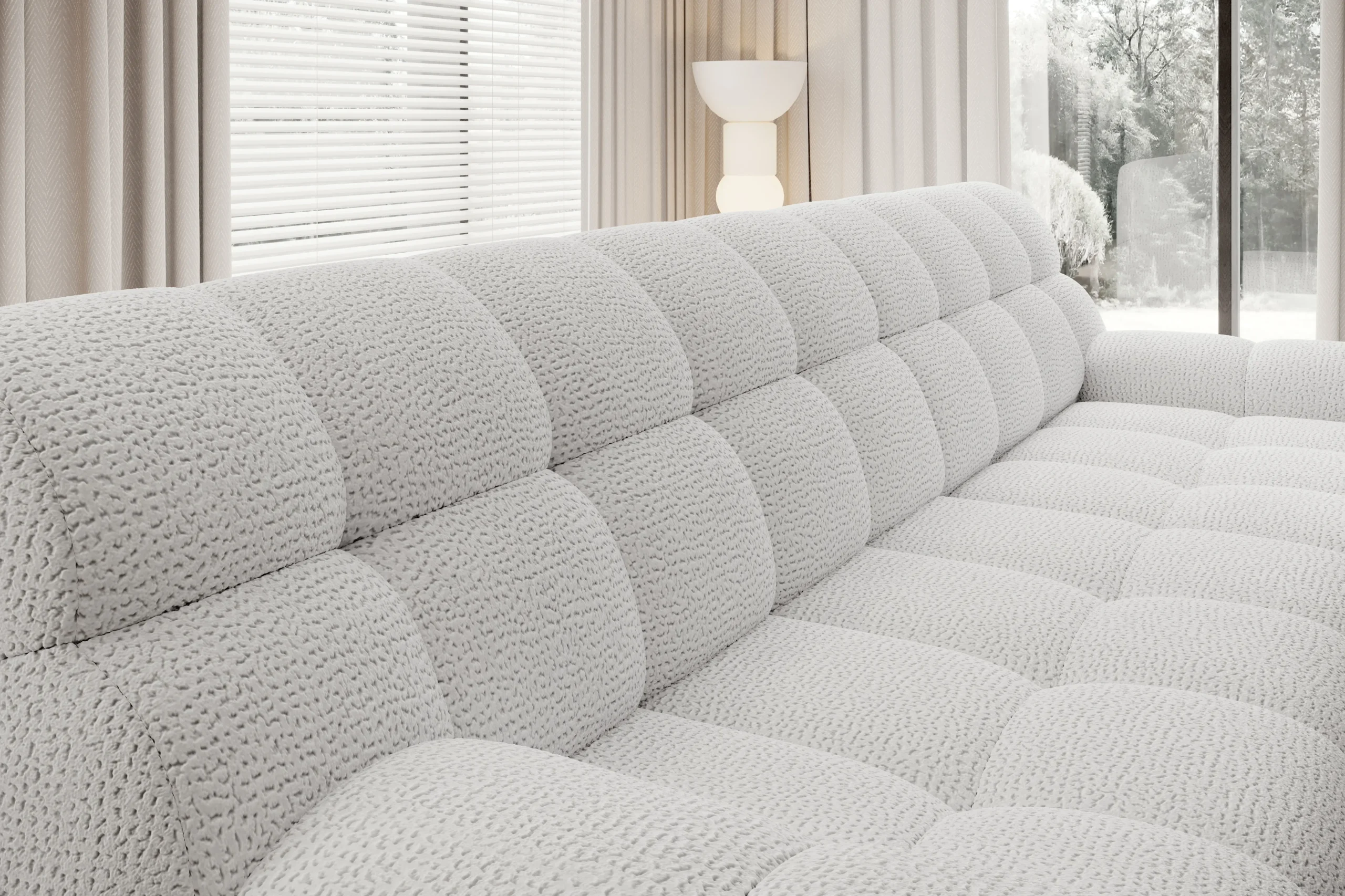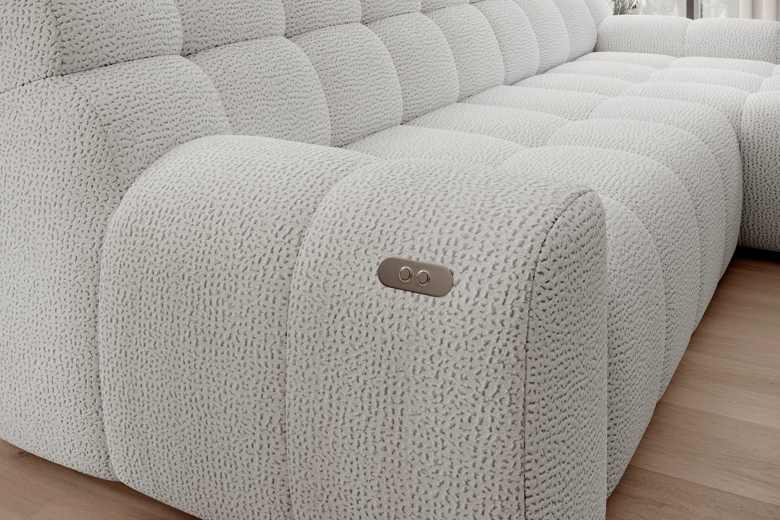 Minkštas kampas COCOON S – modernios formos, minimalistinės konstrukcijos baldas su elektra išstumiamu sėdimosios dalies mechanizmu. Kompaktiškas, tačiau visiškai funkcionalus. Subtilūs dygsniai ir tiesios linijos pabrėžia jo išskirtinį charakterį.