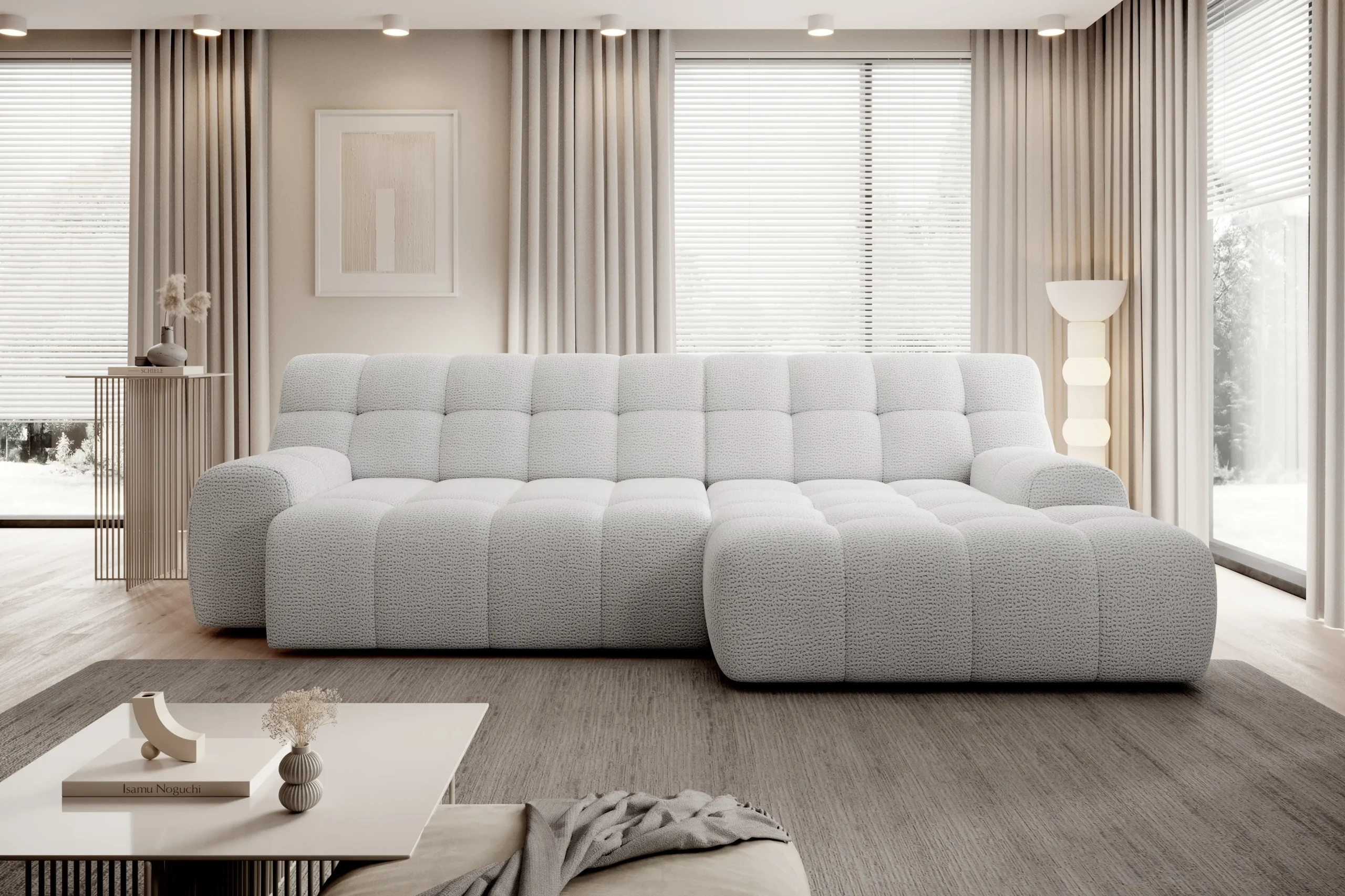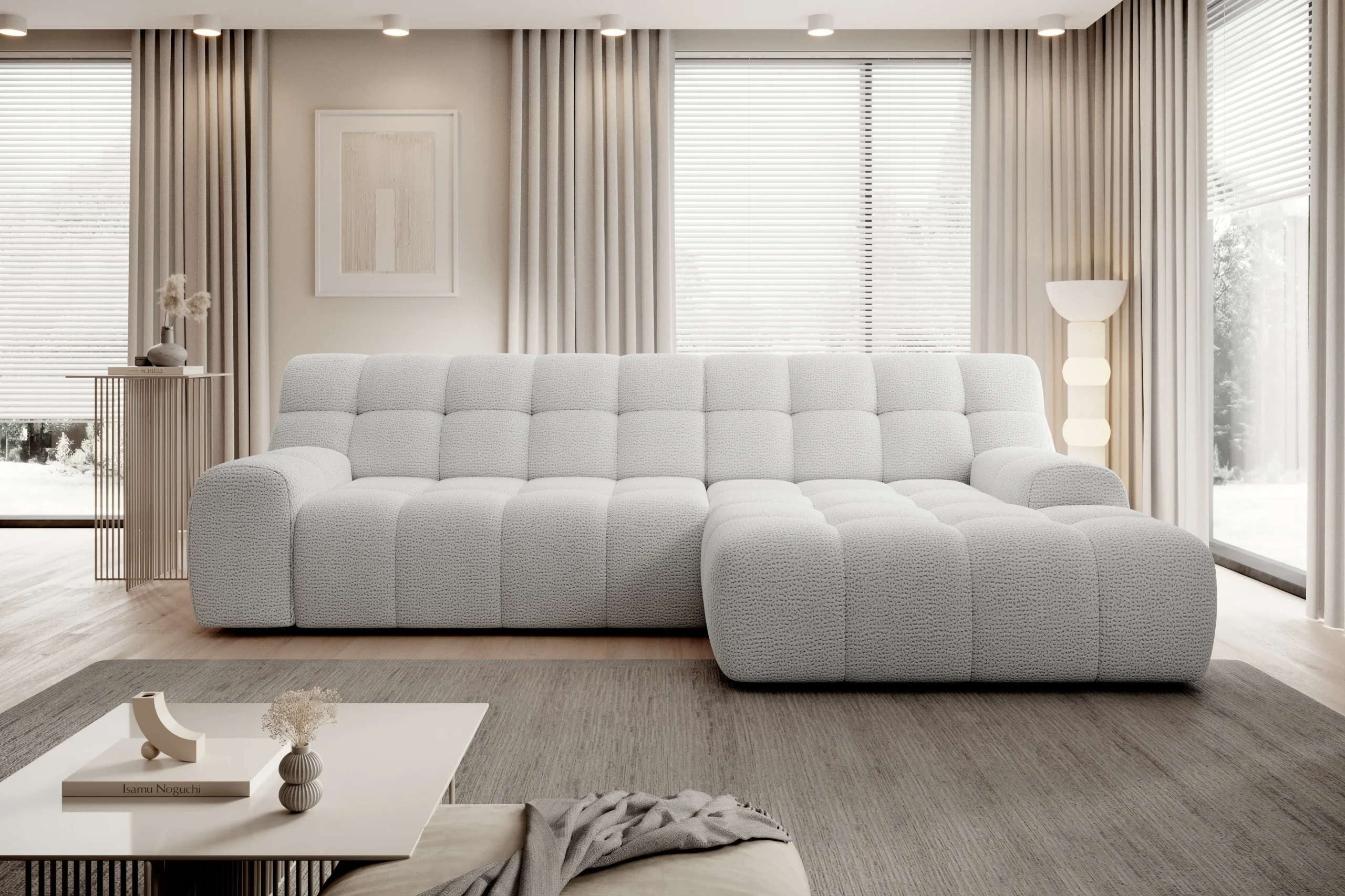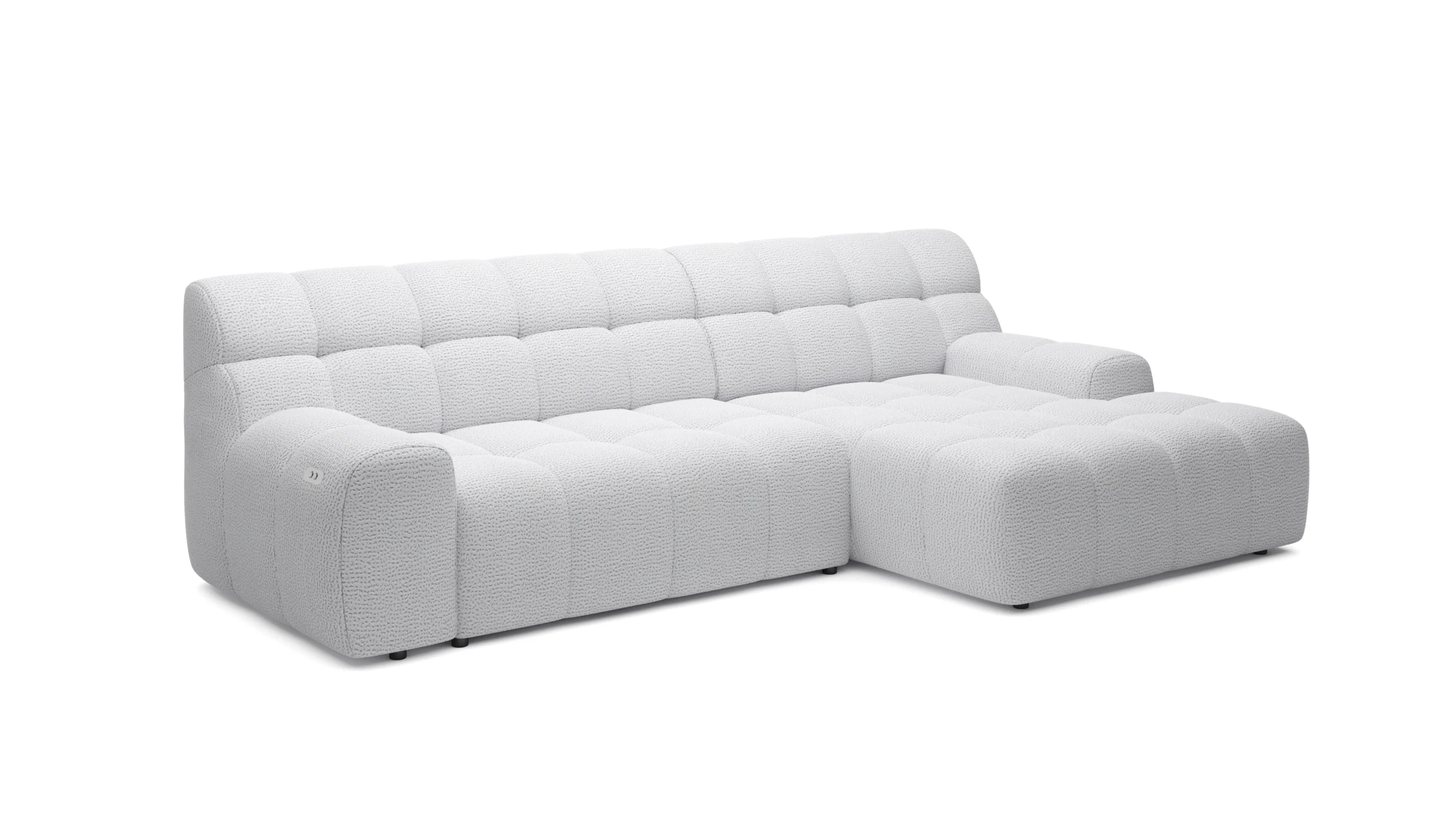 Minkštas kampas COCOON S – modernios formos, minimalistinės konstrukcijos baldas su elektra išstumiamu sėdimosios dalies mechanizmu. Kompaktiškas, tačiau visiškai funkcionalus. Subtilūs dygsniai ir tiesios linijos pabrėžia jo išskirtinį charakterį.