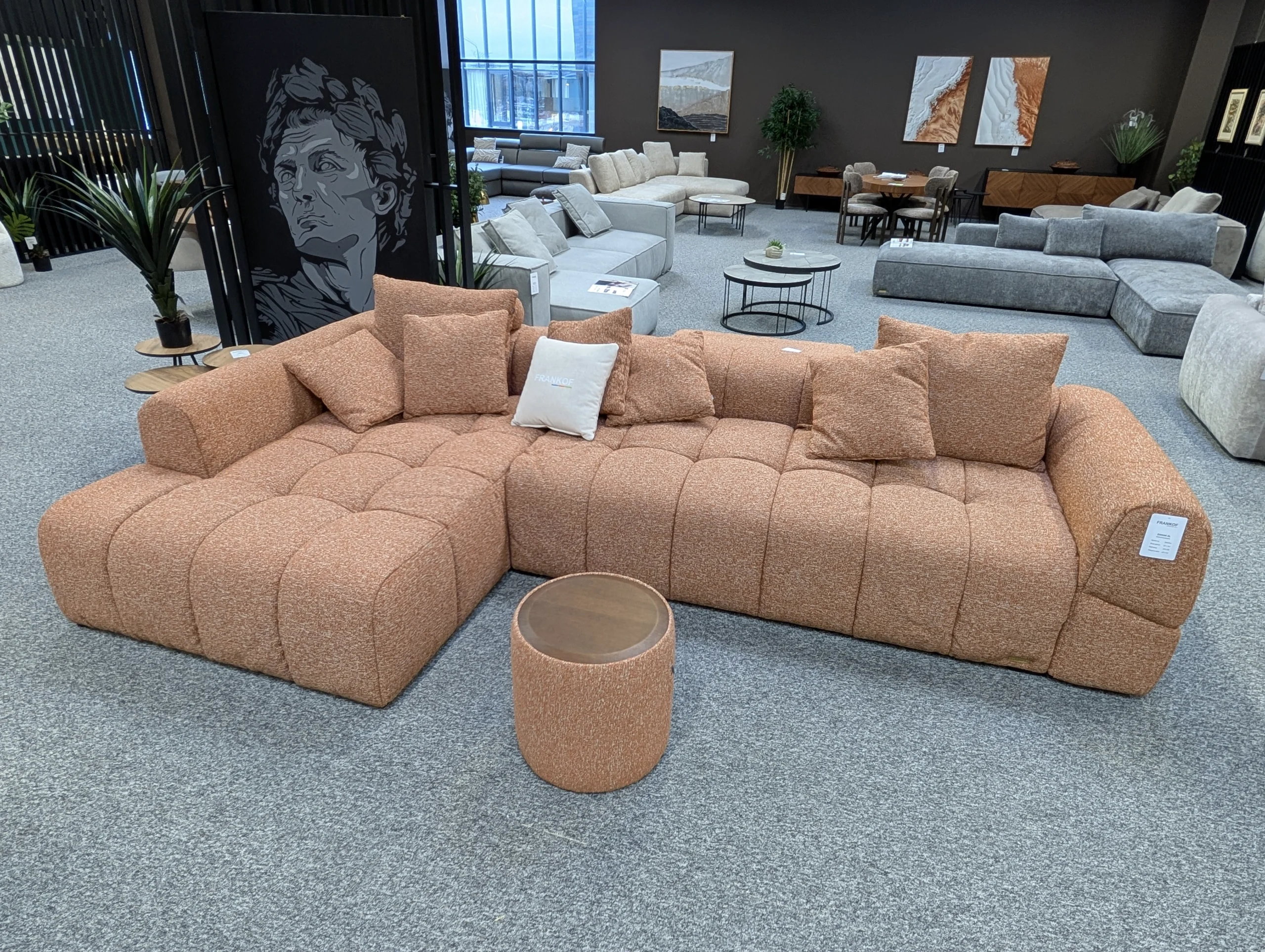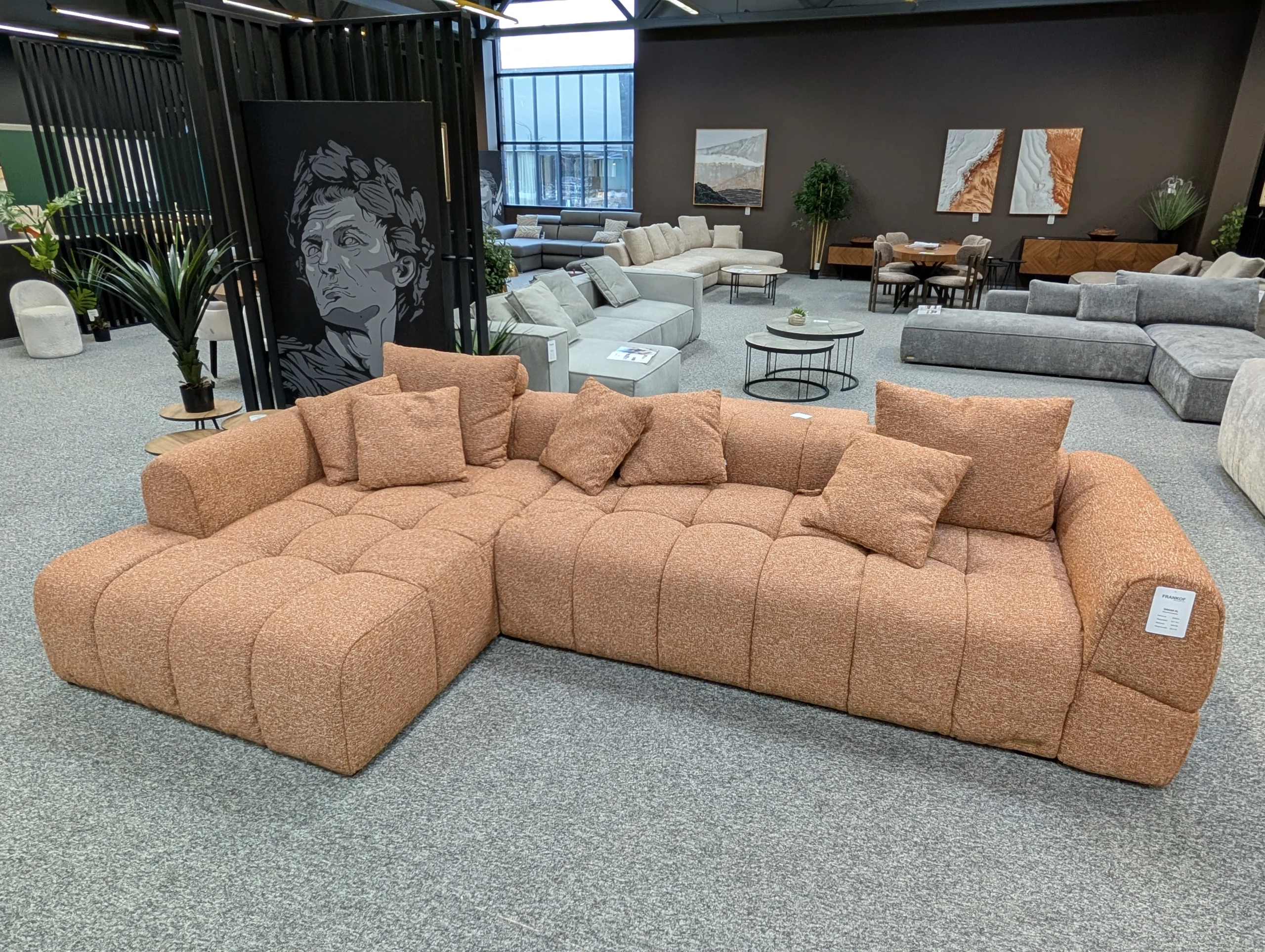 Pagrindinis „Dakar“ privalumas – kompaktiškas modulių gylis – 1100 mm. Sofos užpildas paverčia ją viena minkščiausių FRANKOF asortimente. Konstrukciją stabiliai palaiko nedidelės (3 cm) medinės kojelės. Šis universalus modelis puikiai tiks daugelyje interjerų: moderniame, industriniame, lofto, klasikos, skandinaviškame ar minimalizmo stiliuose.