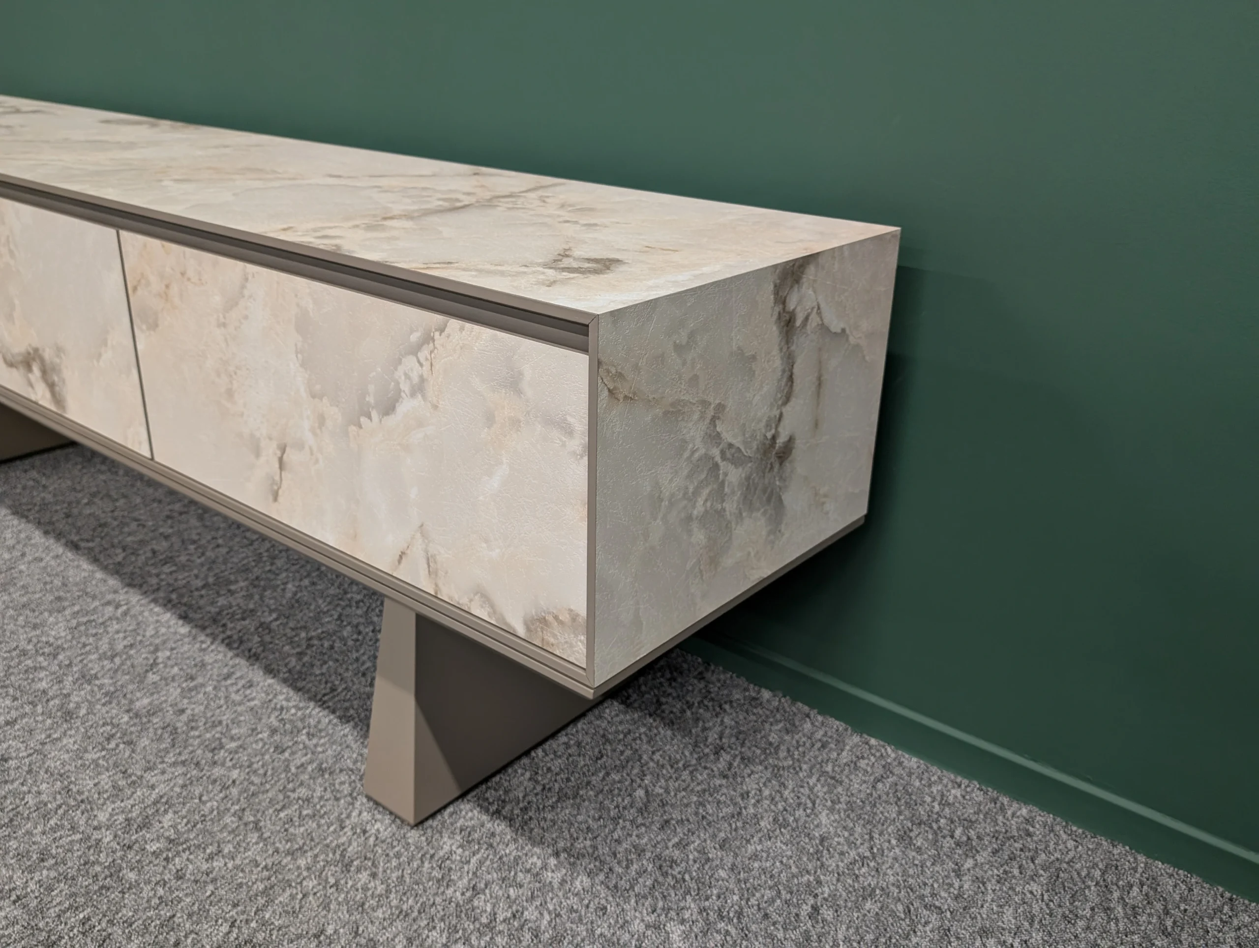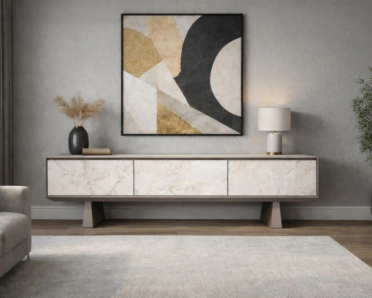 Stilingas ir modernus TV staliukas DIAMOND – puikus pasirinkimas tiems, kurie vertina išskirtinį dizainą ir praktiškus sprendimus. Šis baldas traukia akį ne tik savo estetika, bet ir pasižymi patvarumu bei kokybiška konstrukcija.