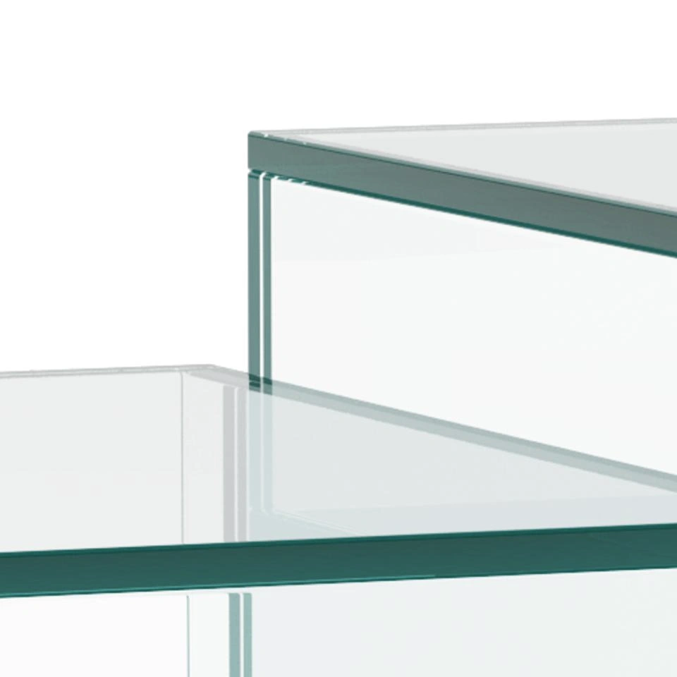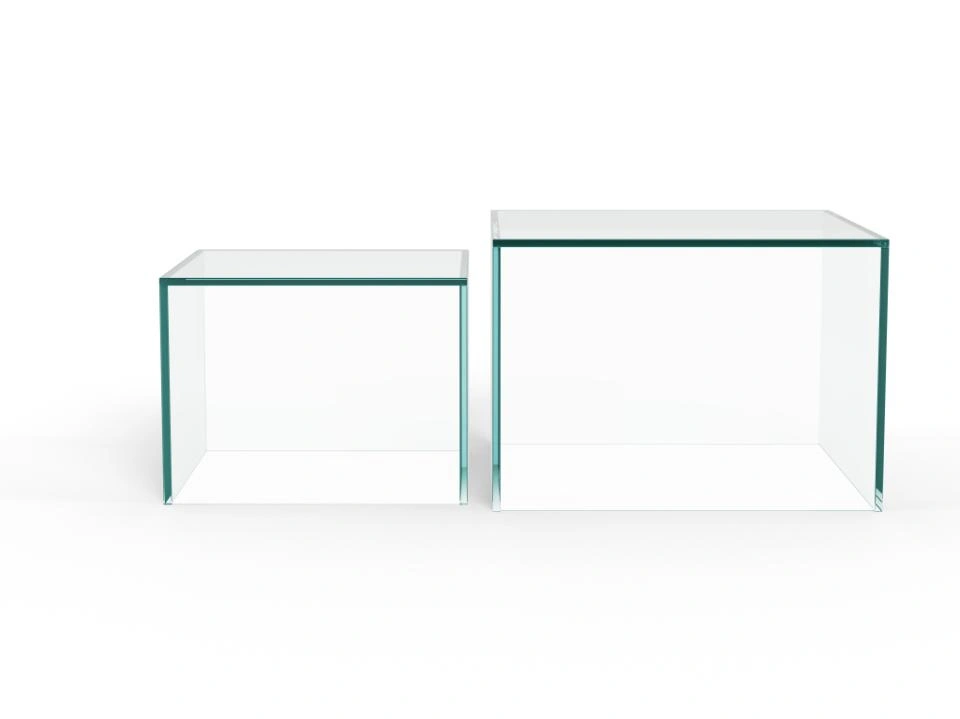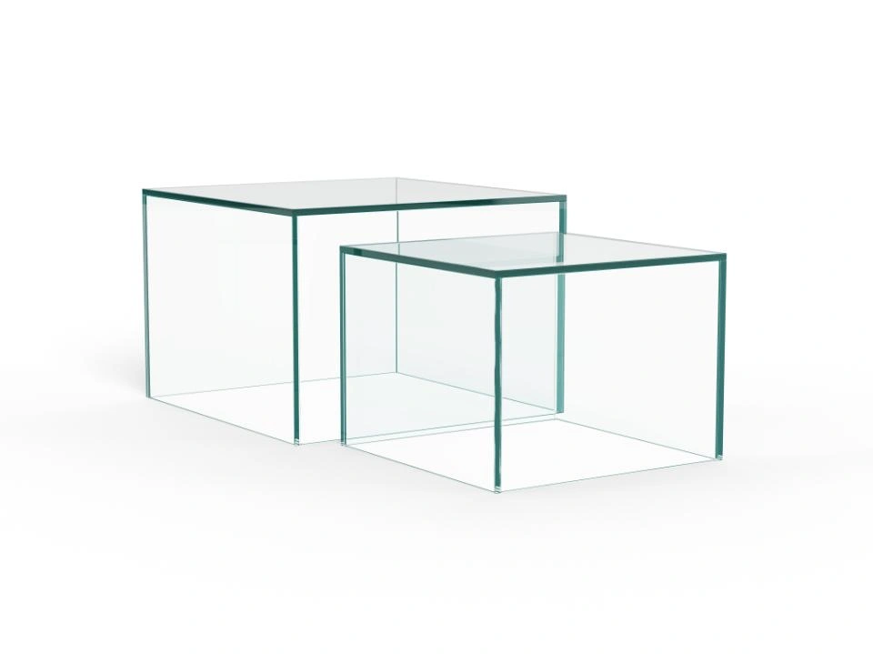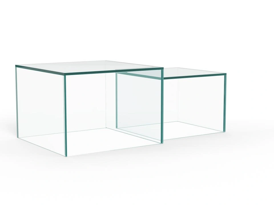 Pagamintas visiškai iš grūdinto stiklo, šis kvadratinis kavos staliukų komplektas suteiks svetainei jaukumo ir šilumos. Komplektą sudaro du skirtingų dydžių kvadratiniai staliukai, leidžiantys kurti įvairius interjero sprendimus ir naudoti juos skirtingiems poreikiams. Nesvarbu, ar jie statomi atskirai, ar kartu – šie staliukai suteikia erdvei sluoksniuotą, lengvą ir elegantišką įvaizdį.