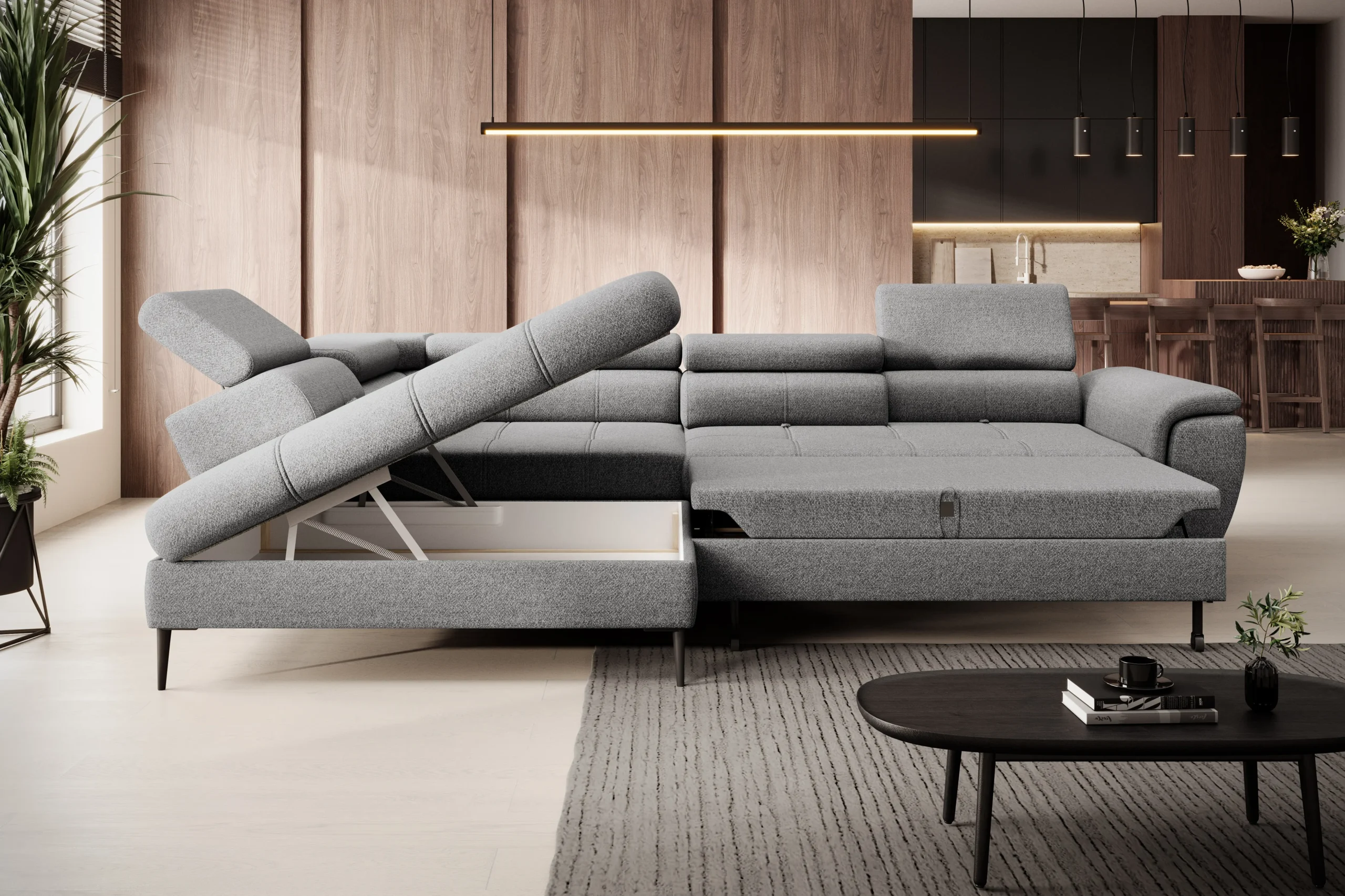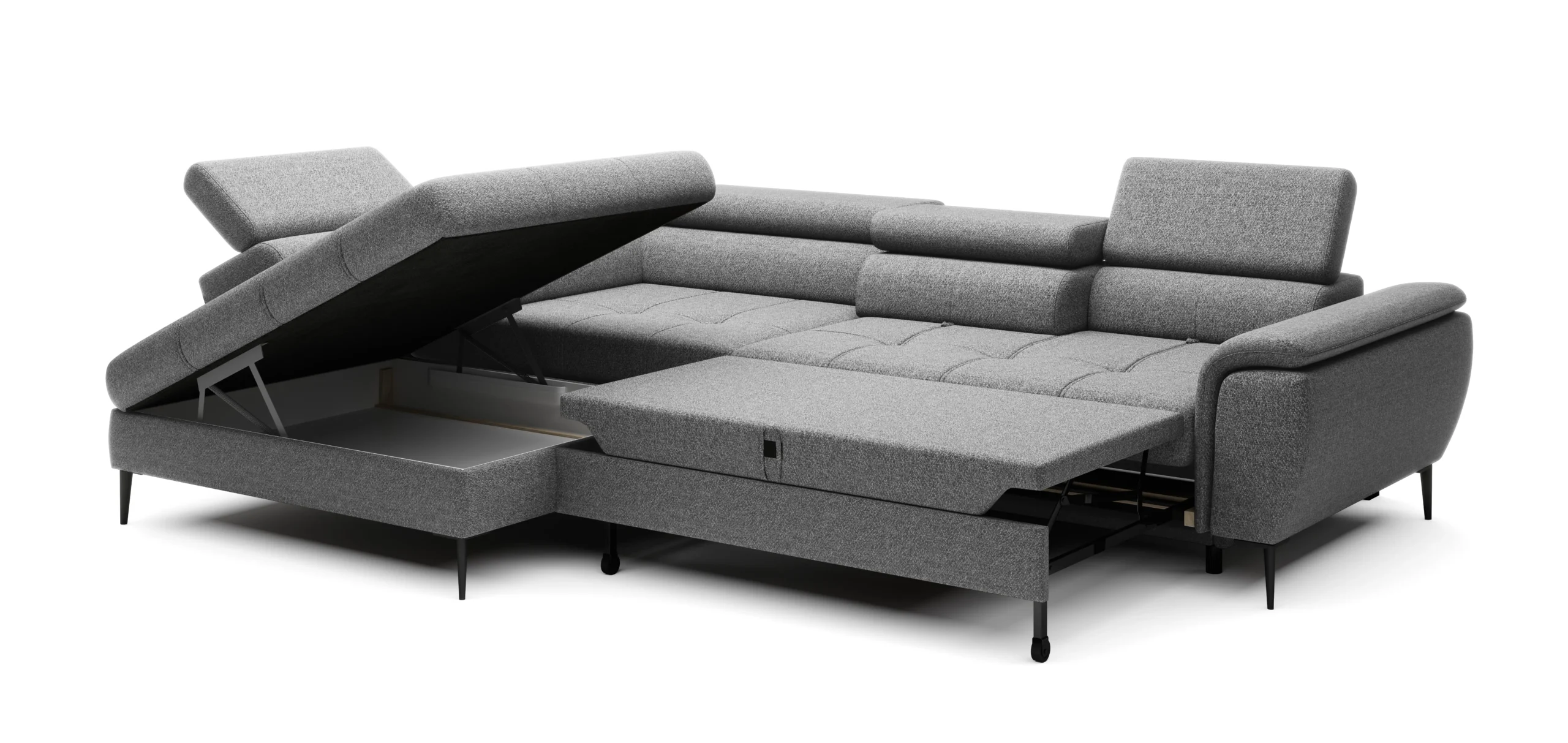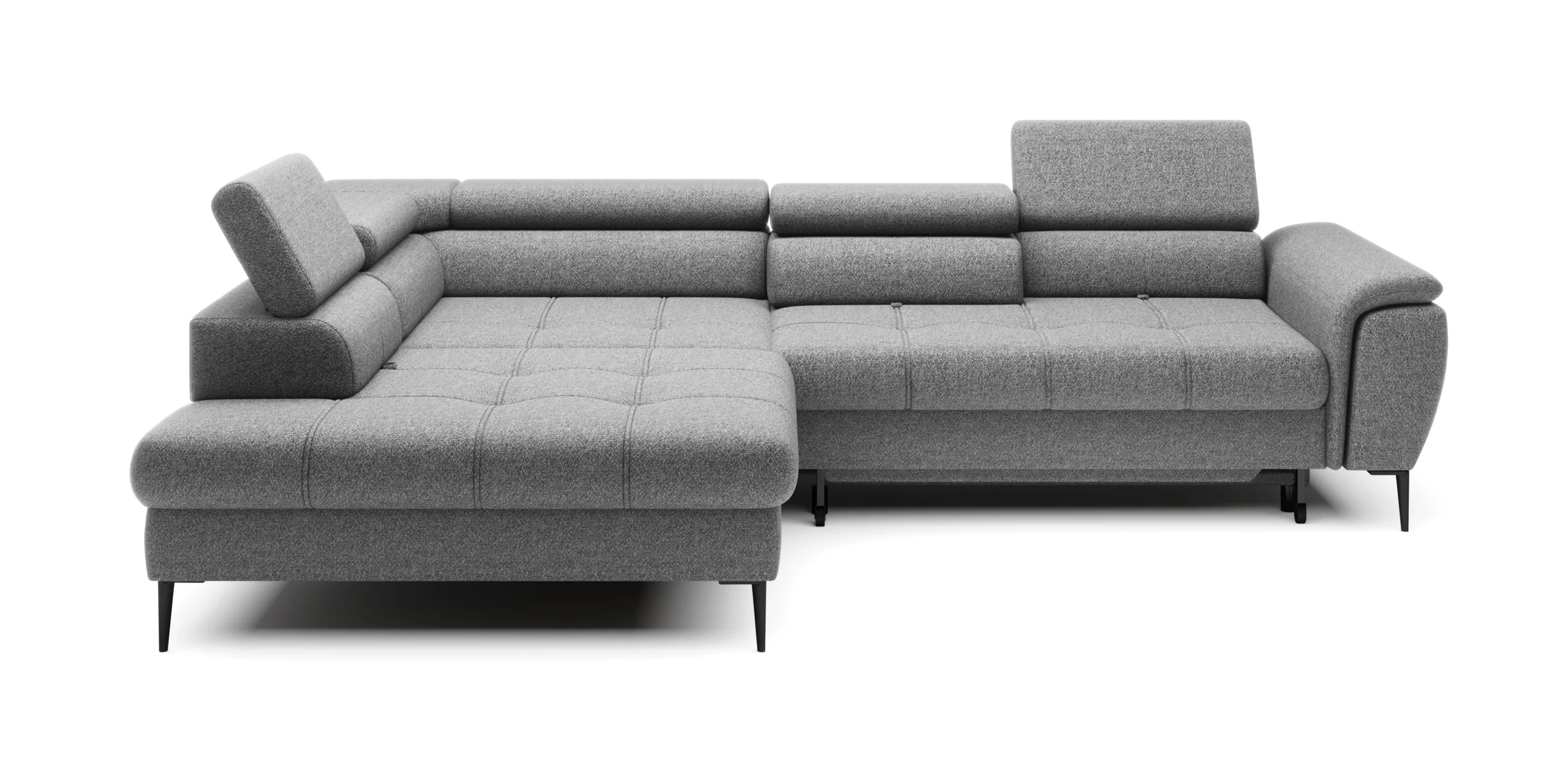 Moderni ir funkcionali kampinė sofa „Denver L“ taps tikru jūsų svetainės akcentu. Elegantiškas dizainas derinamas su aukščiausiu komfortu – reguliuojami galvos atlošai suteikia galimybę prisitaikyti prie individualių poreikių, o plačios sėdimosios dalys leidžia patogiai ilsėtis visai šeimai.