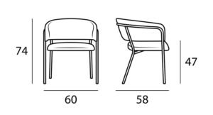 Ši minimalistinio dizaino kėdė išsiskiria lengvumu ir subtilia elegancija. Plonos, bet tvirtos metalinės kojos suteikia baldui modernumo ir vizualinio lengvumo pojūtį, o jų spalvą galite pasirinkti pagal savo interjero spalvinę gamą. Platus audinių pasirinkimas leidžia sukurti norimą estetiką – nuo subtilaus klasikinio iki drąsaus šiuolaikiško įvaizdžio. Ergonomiška sėdimoji dalis užtikrina komfortą, todėl kėdė puikiai tinka tiek valgomojo zonai, tiek svečių ar darbo erdvėms.