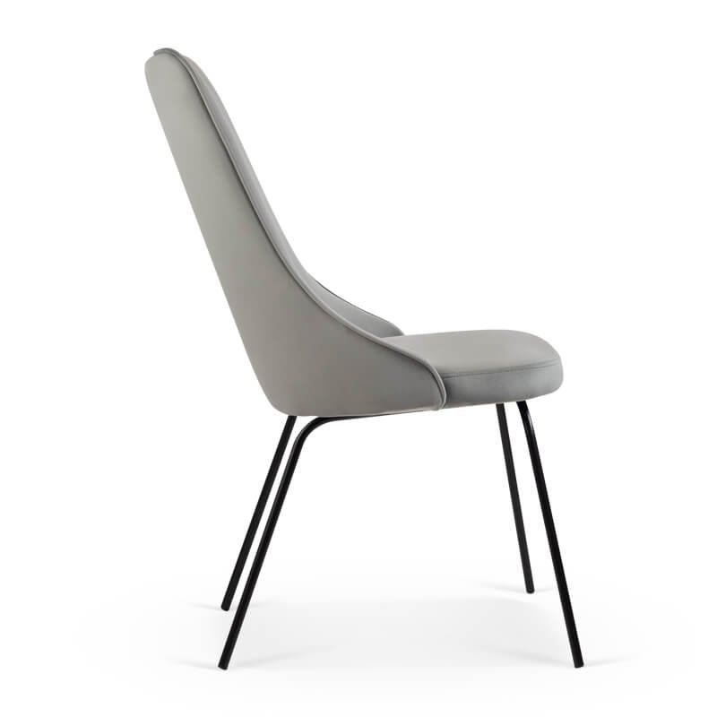 Ši minimalistinio dizaino kėdė išsiskiria lengvumu ir subtilia elegancija. Plonos, bet tvirtos metalinės kojos suteikia baldui modernumo ir vizualinio lengvumo pojūtį, o jų spalvą galite pasirinkti pagal savo interjero spalvinę gamą. Platus audinių pasirinkimas leidžia sukurti norimą estetiką – nuo subtilaus klasikinio iki drąsaus šiuolaikiško įvaizdžio. Ergonomiška sėdimoji dalis užtikrina komfortą, todėl kėdė puikiai tinka tiek valgomojo zonai, tiek svečių ar darbo erdvėms.