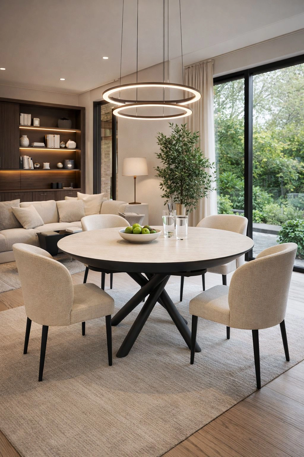 Šis stalas ne tik funkcionalus, bet ir stilingas – jame patogiai gali sėdėti 4-6 žmonės, todėl jis puikus pasirinkimas šeimos vakarienėms.