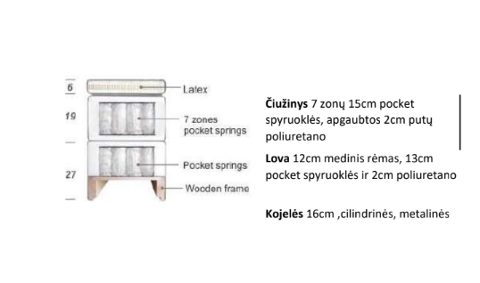 Lova 12cm medinis rėmas, 13 cm pocket spyruoklės ir 2 cm poliuretano
