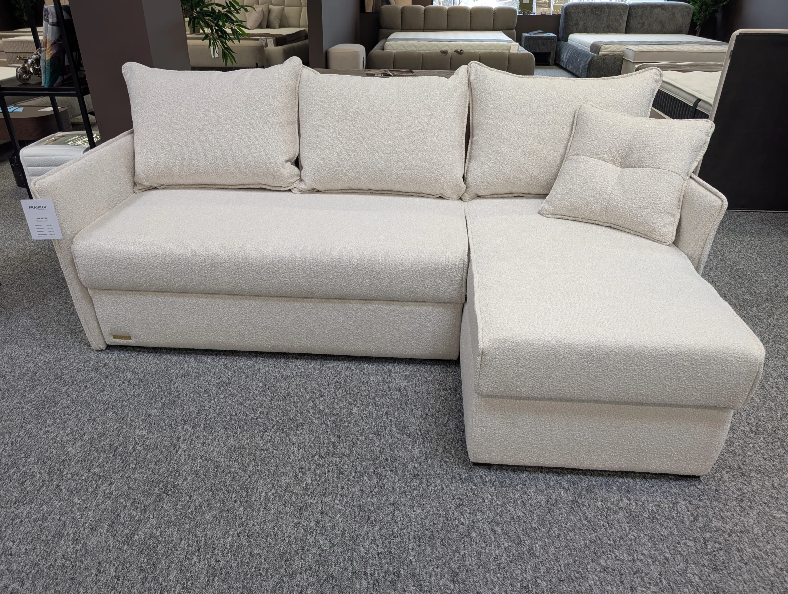 Minkštas kampas „Liverpool“ yra funkcionalus sprendimas Jūsų erdvei iš FRANKOF. Rafinuotas minimalizmas su plonais porankiais leidžia sofai harmoningai įsilieti į bet kokį interjerą.