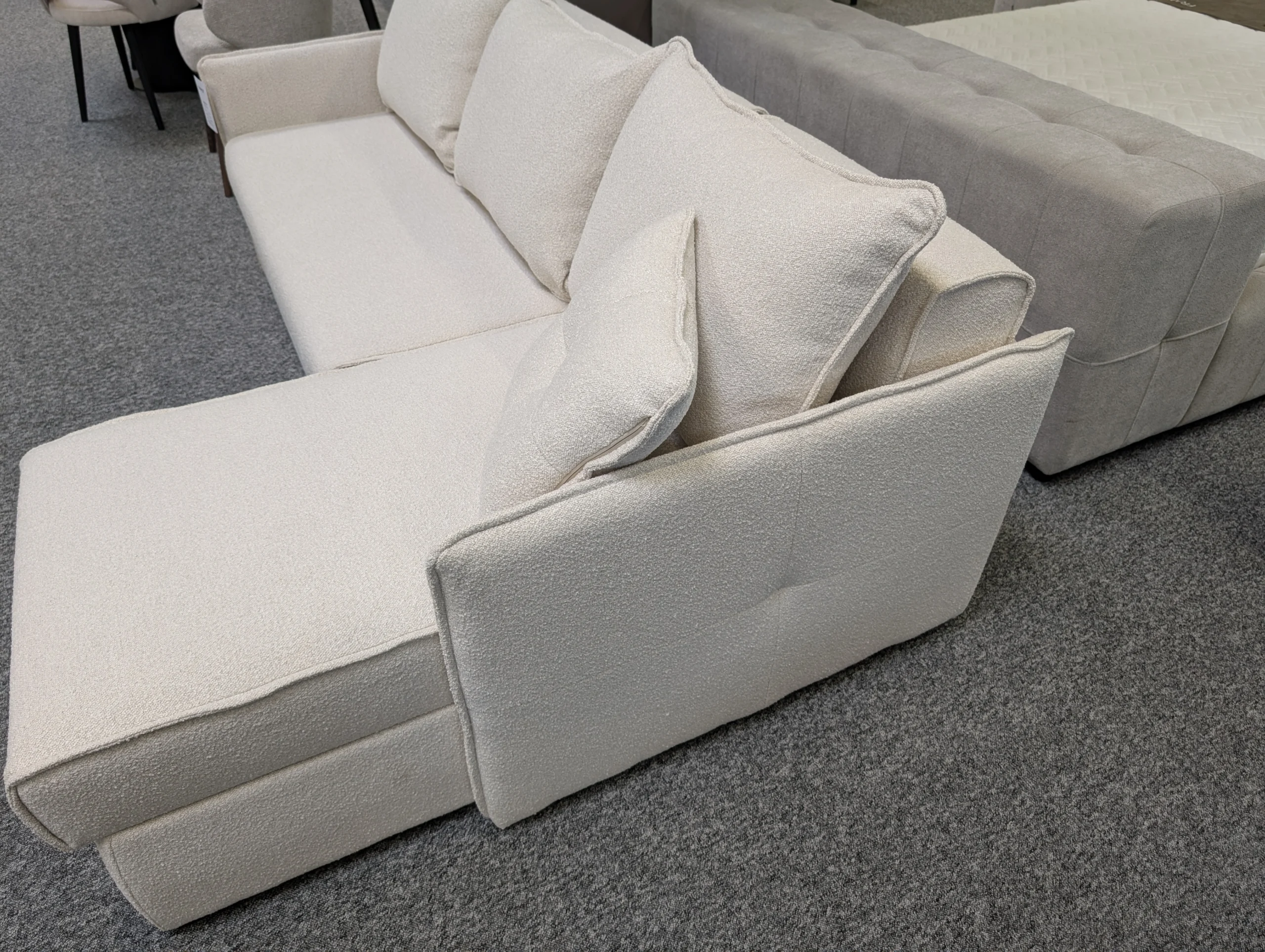 Ortopedinis užpildas, paremtas sustiprintu spyruokliniu bloku su didelio tankio poliuretano putų sluoksniu, suteikia tinkamą kūno atramą poilsio ir miego metu. Patikimas miegojimo mechanizmas daro sofą idealiu sprendimu kasdieniam naudojimui.