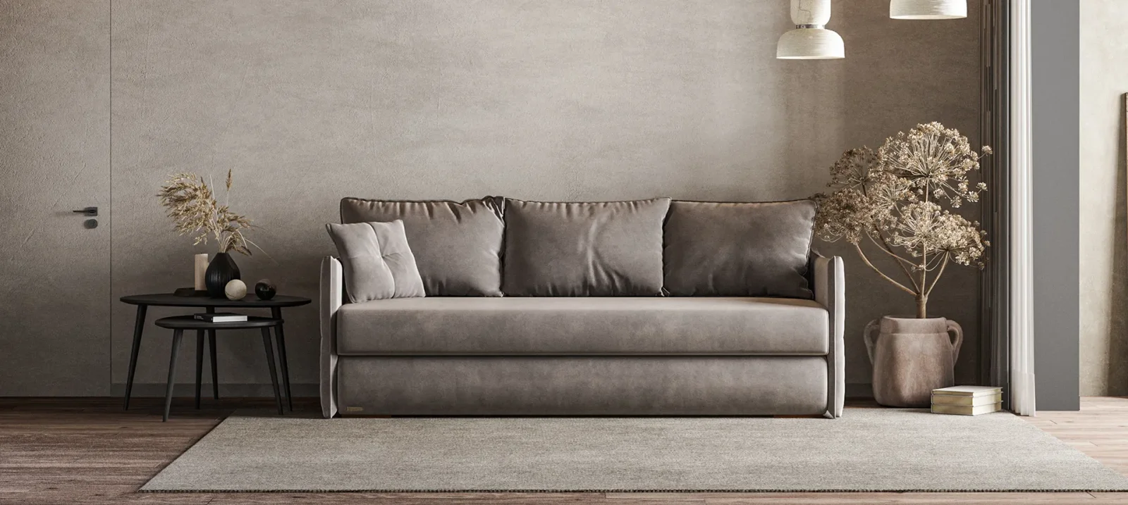 Ortopedinis užpildas, paremtas sustiprintu spyruokliniu bloku su didelio tankio poliuretano putų sluoksniu, suteikia tinkamą kūno atramą poilsio ir miego metu. Patikimas miegojimo mechanizmas daro sofą idealiu sprendimu kasdieniam naudojimui.