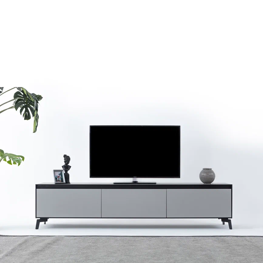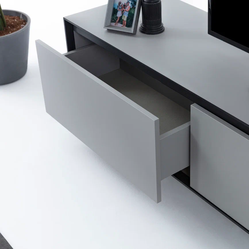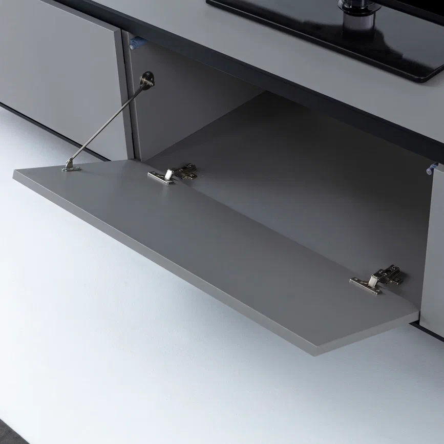 TV Staliukas turi 3 erdvius skyrius: 2 stalčius ir 1 dalis su durelėmis, kurios atsidaro paspaudimu. Toks funkcionalumas užtikrina patogų ir tvarkingą daiktų laikymą be nereikalingų detalių.
