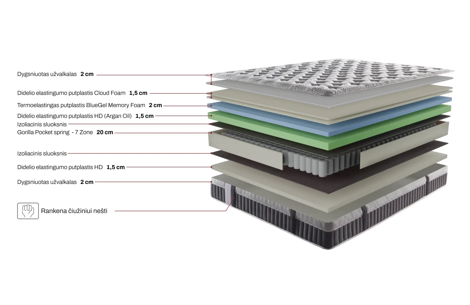 | Čiužinio tipas | Putų poliuretanas |