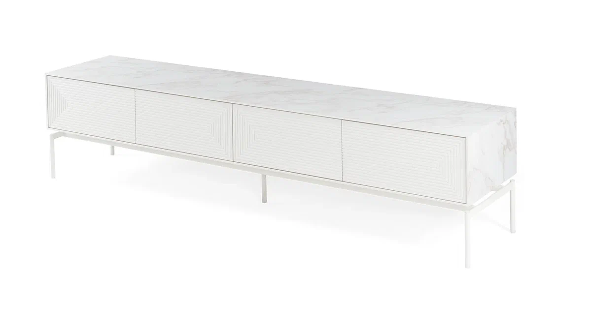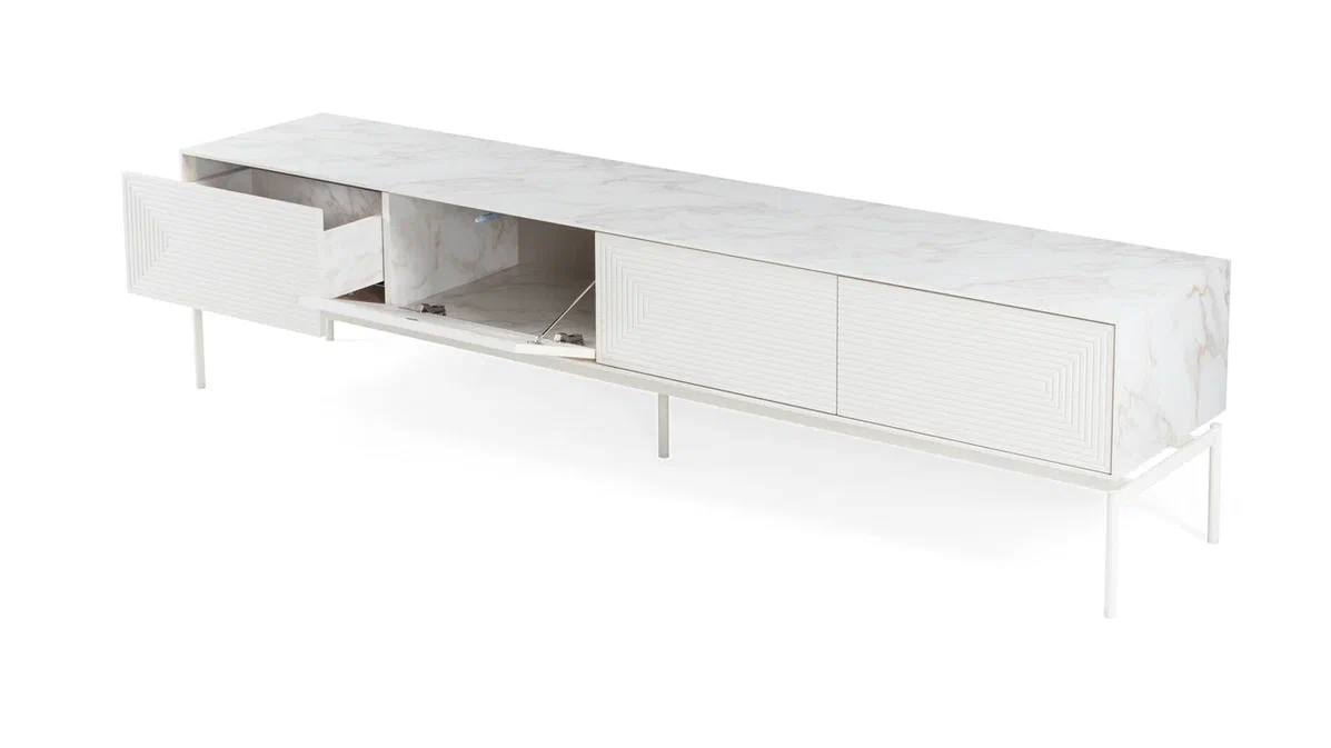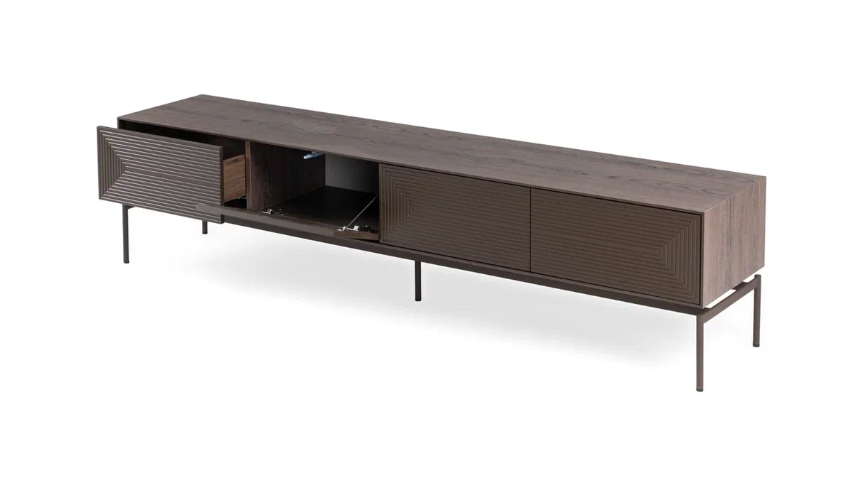 TV Staliukas turi 4 erdvius skyrius: 2 stalčius ir 2 dalis su durelėmis, kurios atsidaro paspaudimu. Toks funkcionalumas užtikrina patogų ir tvarkingą daiktų laikymą be nereikalingų detalių.