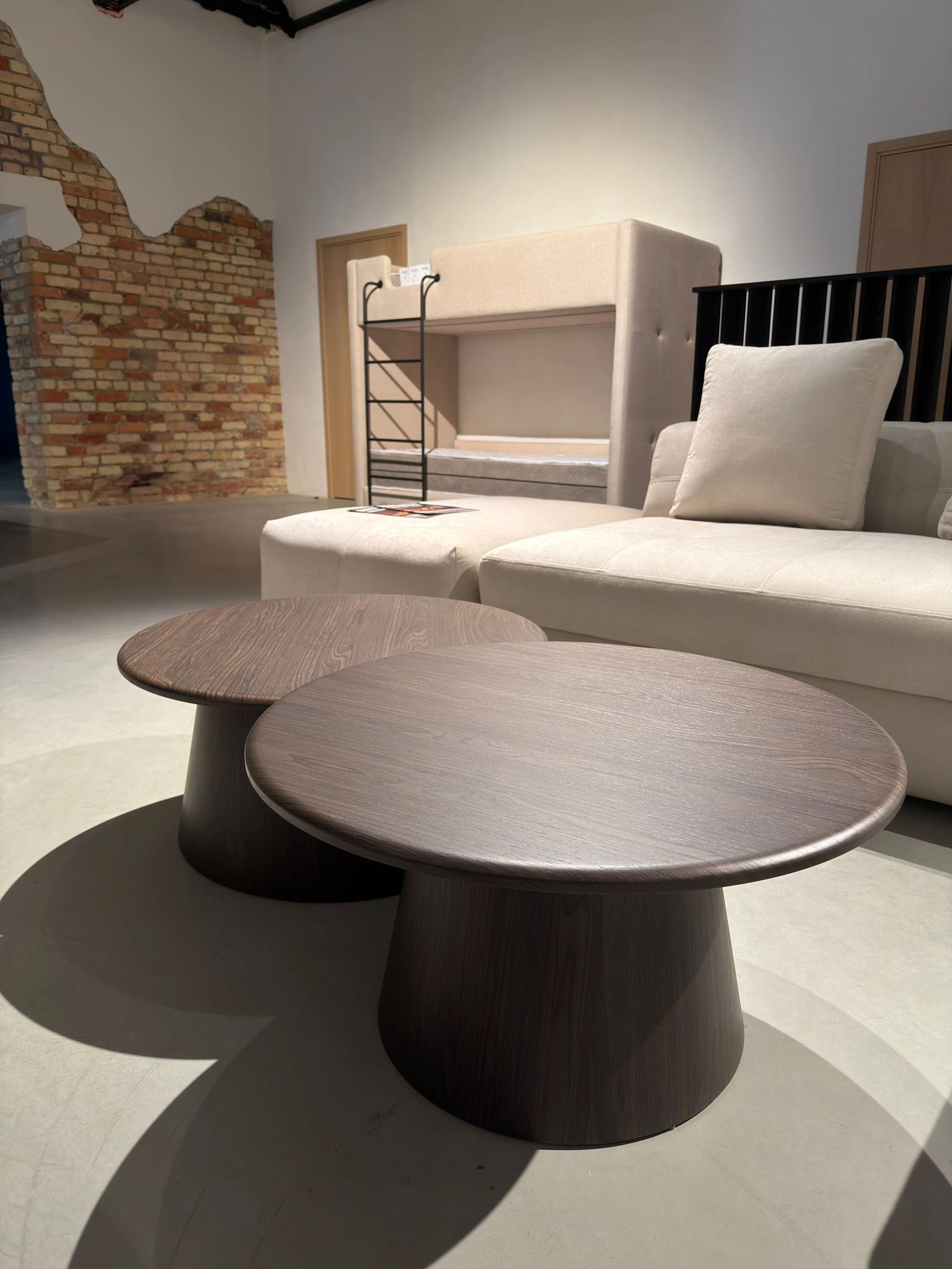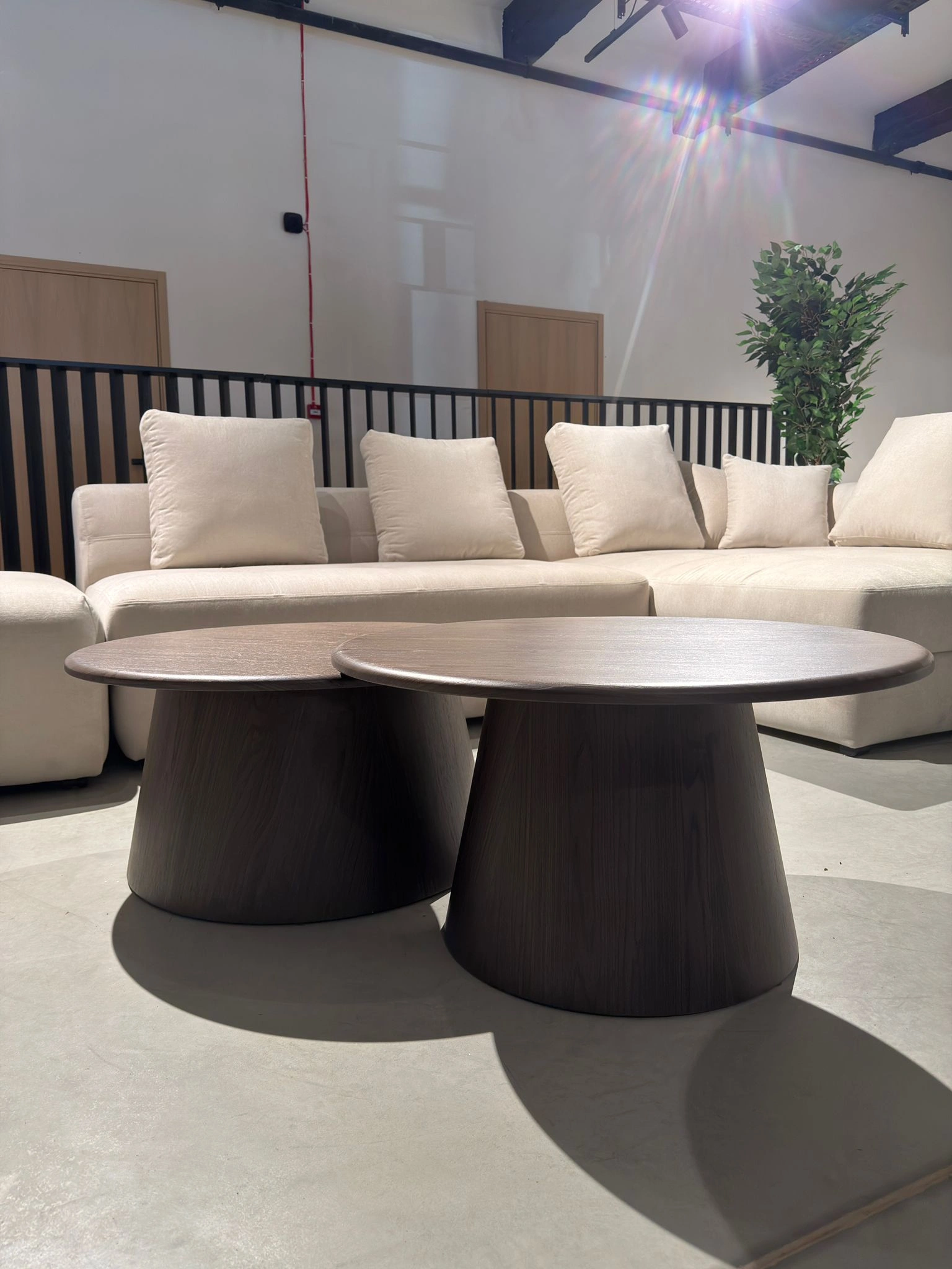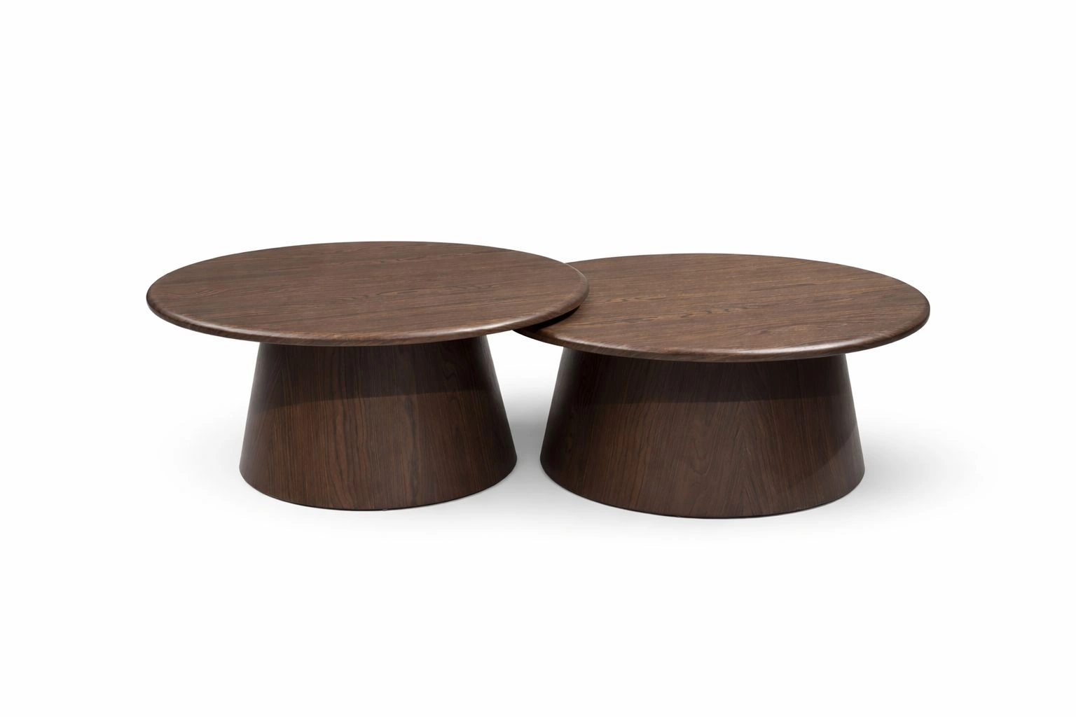 Staliukų paviršiai dengti Venge Veneer spalva, kuri suteikia šilumos pojūtį ir natūralios medienos išvaizdą. Solidi, apvali stalo koja subtiliai pereina iš platėjančio pagrindo į siauresnę viršūnę, kurdama skulptūrišką ir išskirtinį dizainą, traukiantį akį.