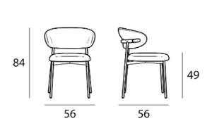 Ši minimalistinio dizaino kėdė išsiskiria lengvumu ir subtilia elegancija. Plonos, bet tvirtos metalinės kojos suteikia baldui modernumo ir vizualinio lengvumo pojūtį, o jų spalvą galite pasirinkti pagal savo interjero spalvinę gamą. Platus audinių pasirinkimas leidžia sukurti norimą estetiką – nuo subtilaus klasikinio iki drąsaus šiuolaikiško įvaizdžio. Ergonomiška sėdimoji dalis užtikrina komfortą, todėl kėdė puikiai tinka tiek valgomojo zonai, tiek svečių ar darbo erdvėms