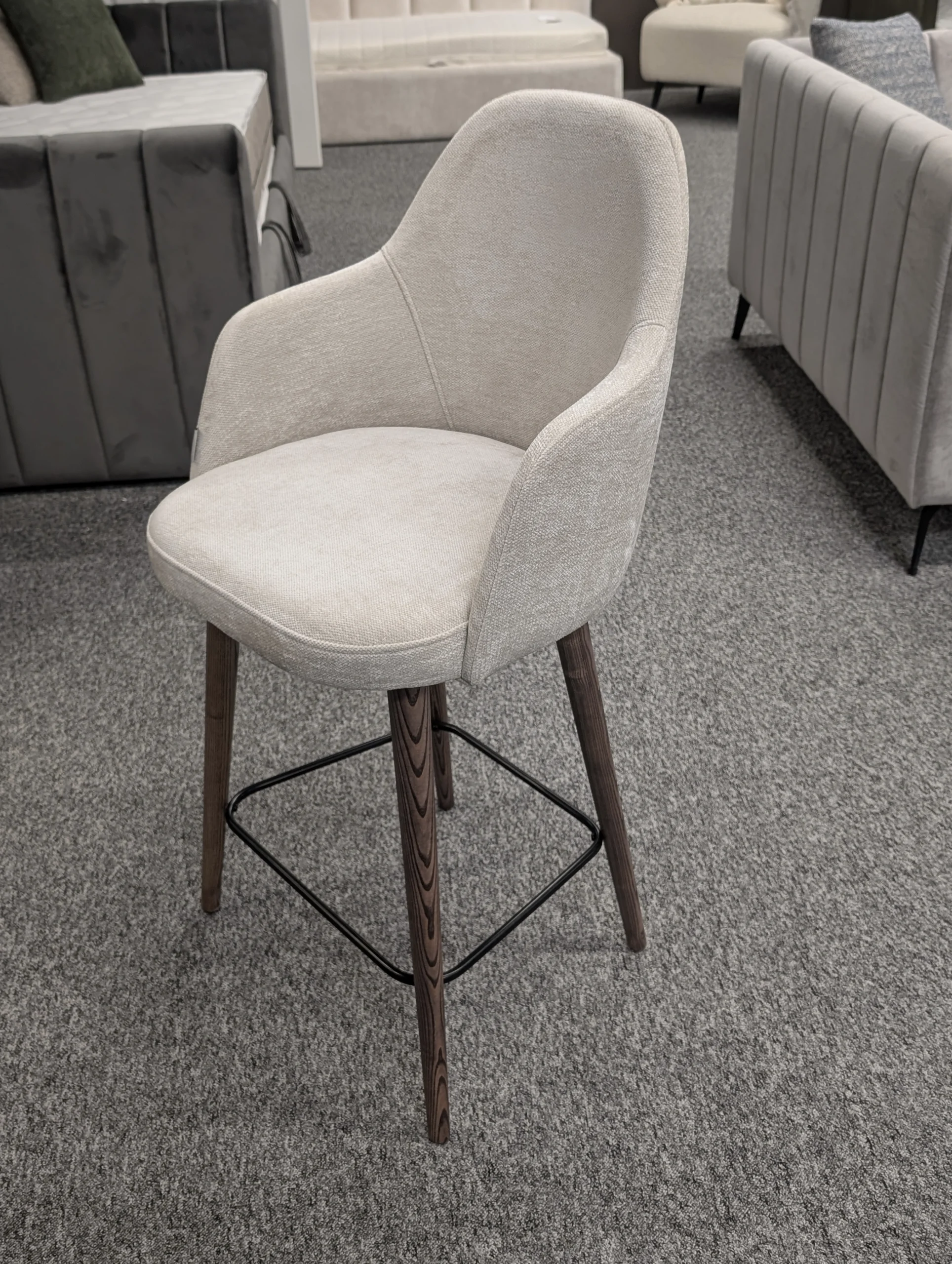 Ši stilinga pusbario kėdė su medinėmis kojomis puikiai dera tiek klasikiniame, tiek moderniame interjere. Galimybė pasirinkti skirtingas medžio spalvas leidžia lengvai pritaikyti ją pagal jūsų norus ir interjero dizainą. Be to, siūlome platų audinių pasirinkimą, kad pusbario kėdė būtų ne tik patogi, bet ir stilinga. Tvirtos ir stabilios kojos užtikrina ilgaamžiškumą, o komfortiška sėdimoji dalis leidžia mėgautis maloniu sėdėjimu ilgą laiką.