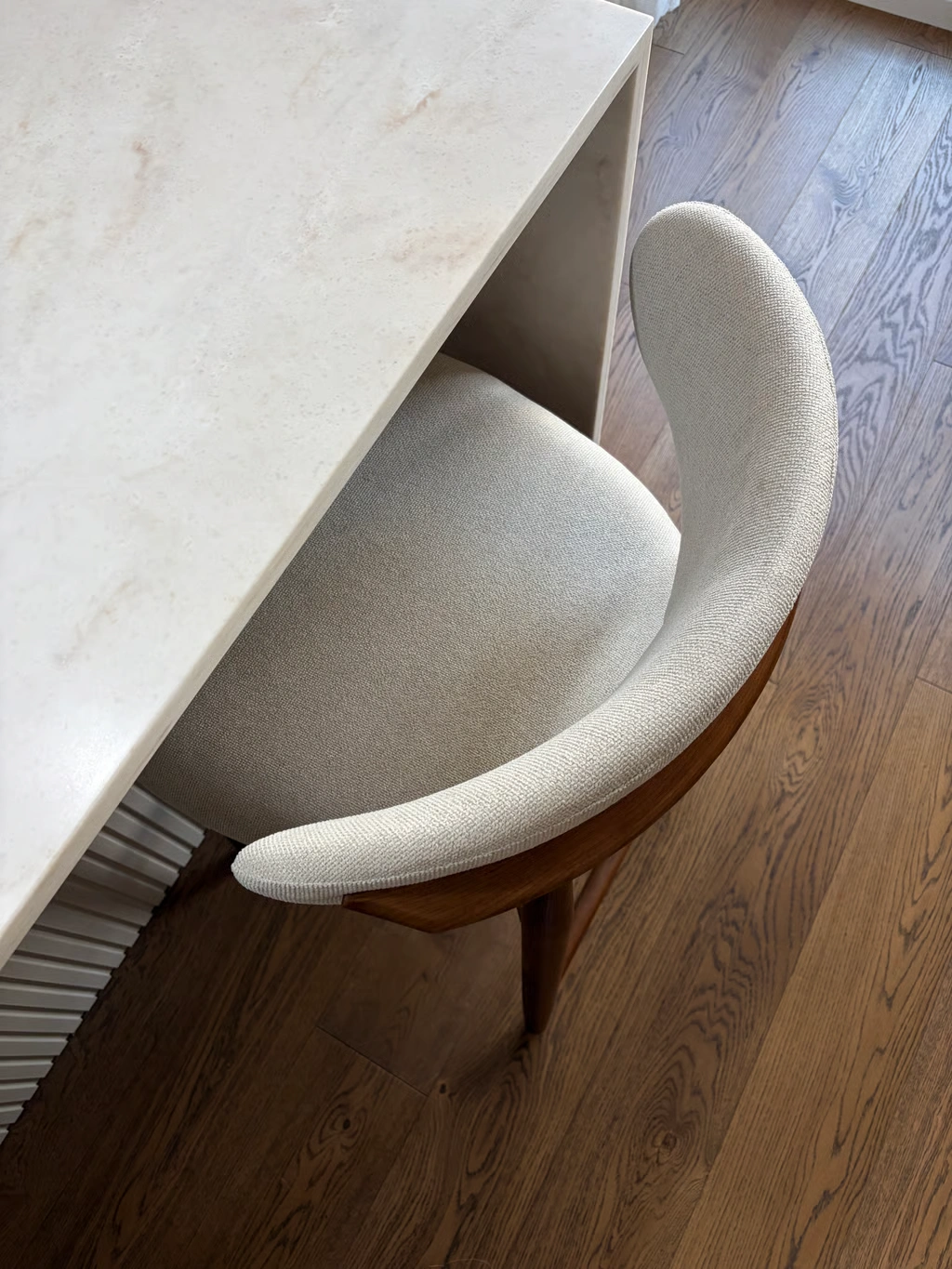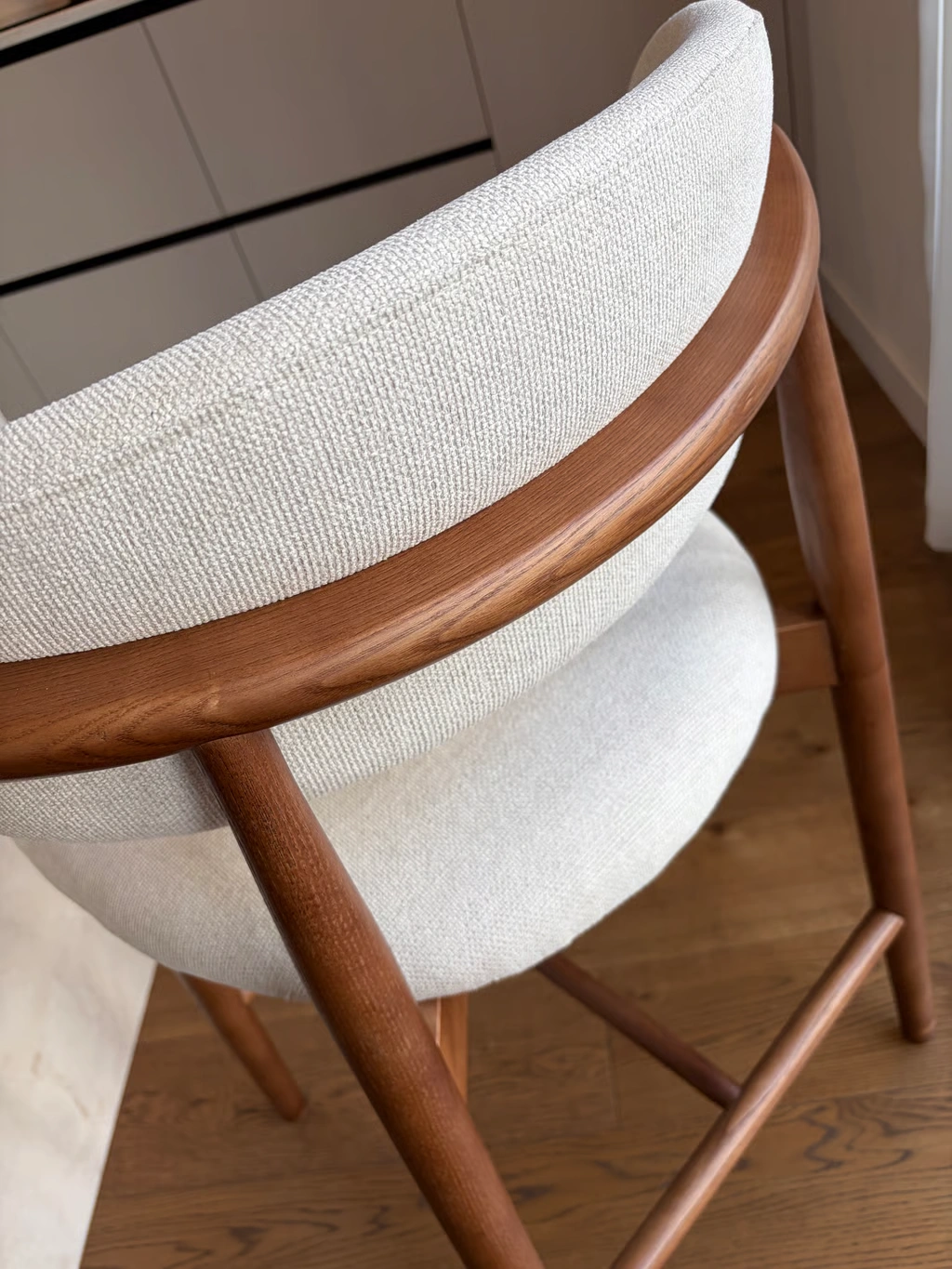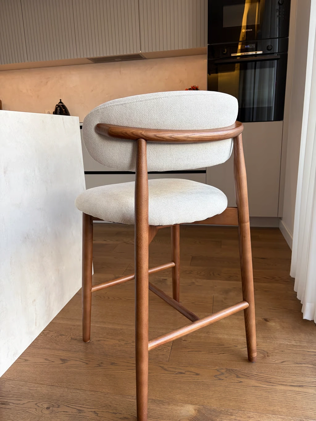 Moderni ir stilinga pusbario kėdė, kuri harmoningai dera tiek šiuolaikiniame, tiek klasikiniame interjere. Jos subtilus dizainas ir išgrynintos formos suteikia erdvei elegancijos bei lengvumo pojūtį. Kolekcijoje yra ir tokio pat dizaino valgomojo kėdės – puikus pasirinkimas vientisam interjero sprendimui.