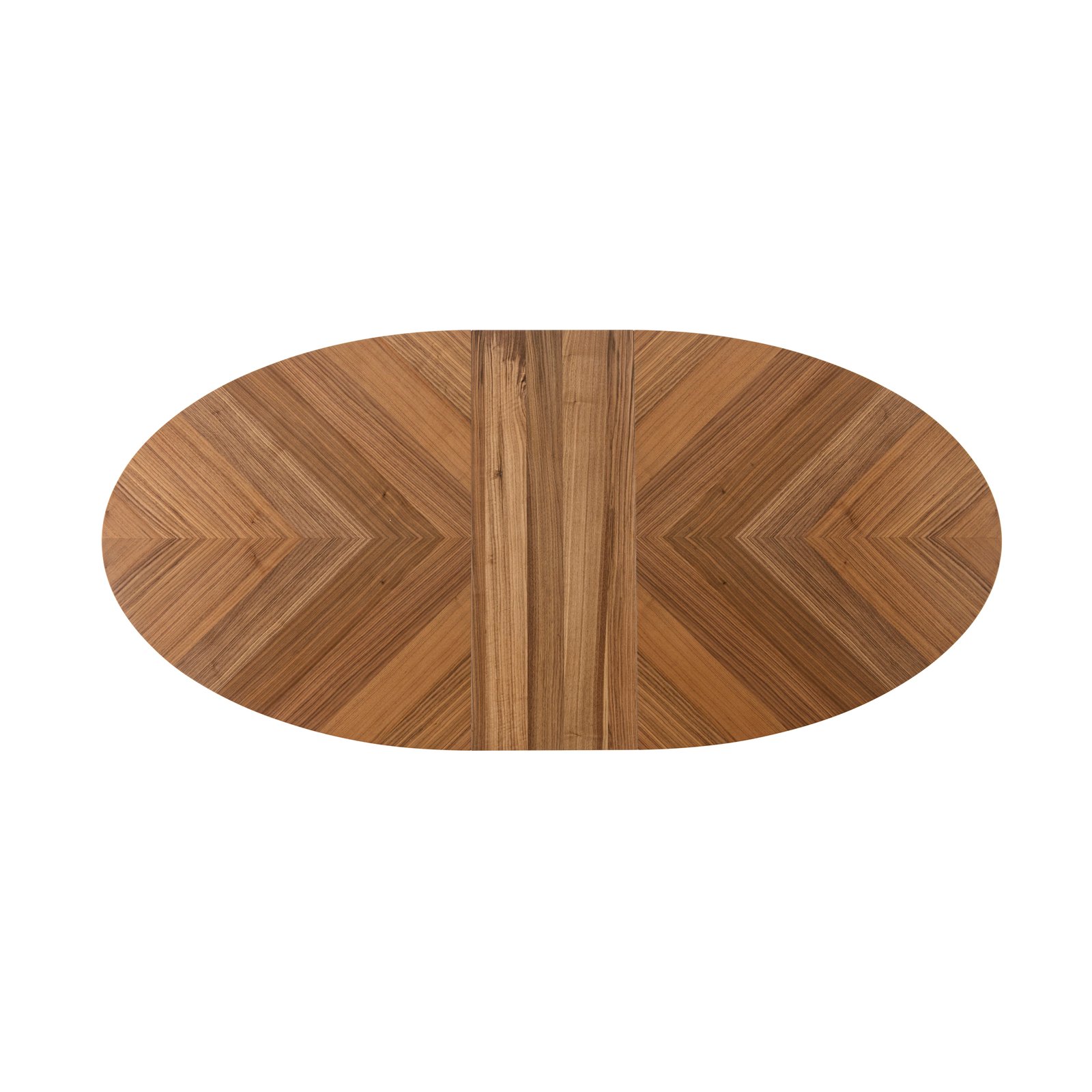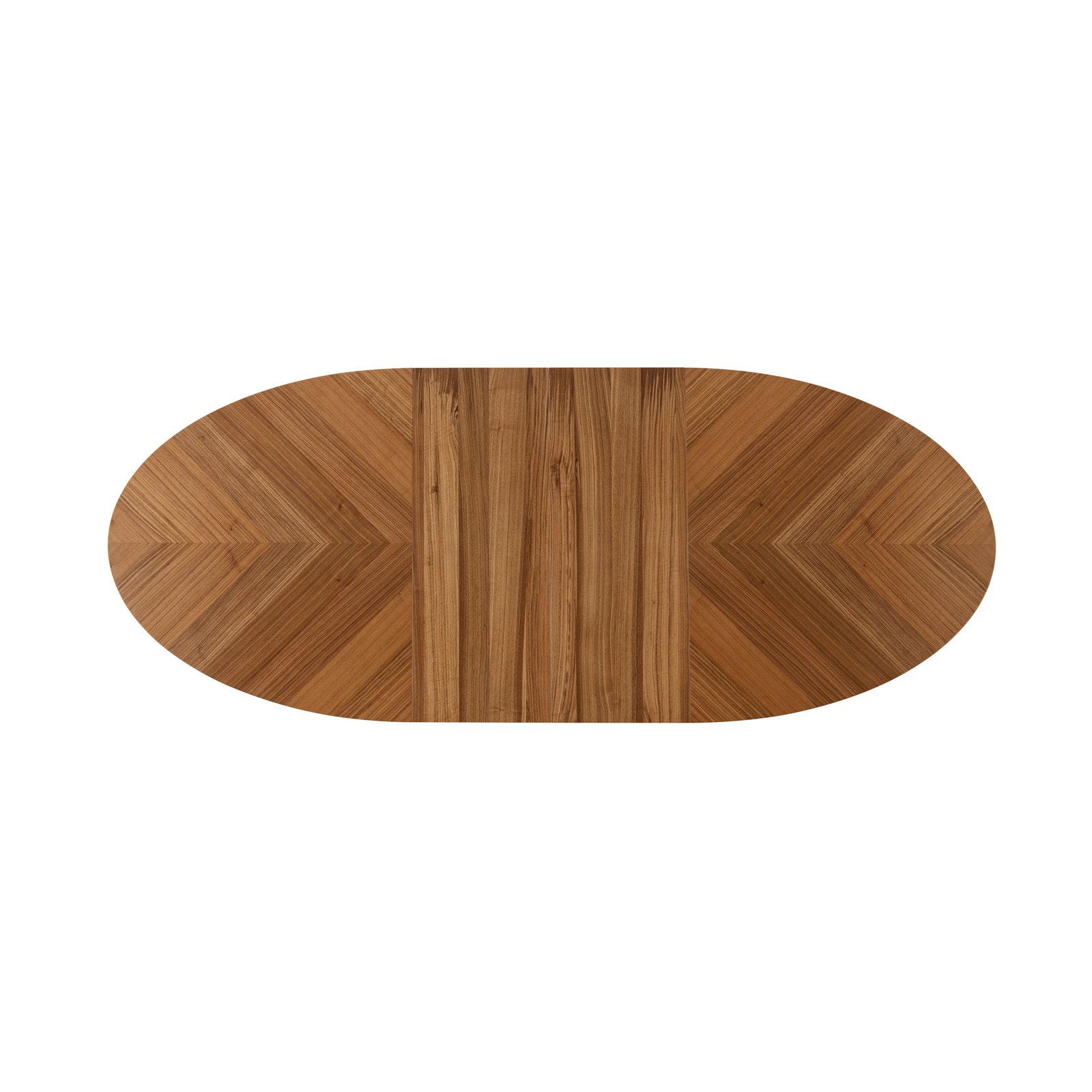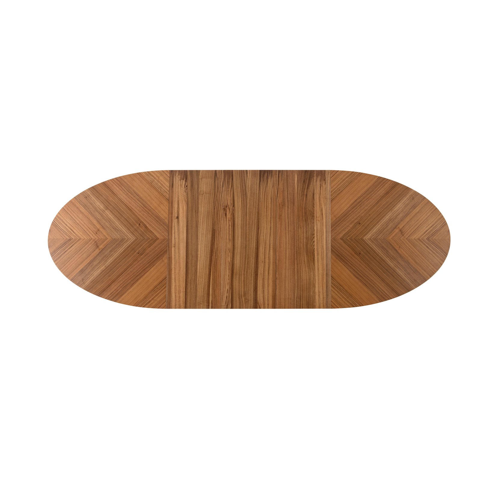 Išskirtinis dizainas ir praktiškumas susitinka stilingame valgomojo stale RODA. Tai ovalios formos išskleidžiamas stalas su unikaliu, natūralaus riešutmedžio atspalvio raštu, dengtu kokybiška faneruote, kuri suteikia stalui išskirtinį charakterį ir ilgaamžiškumą.