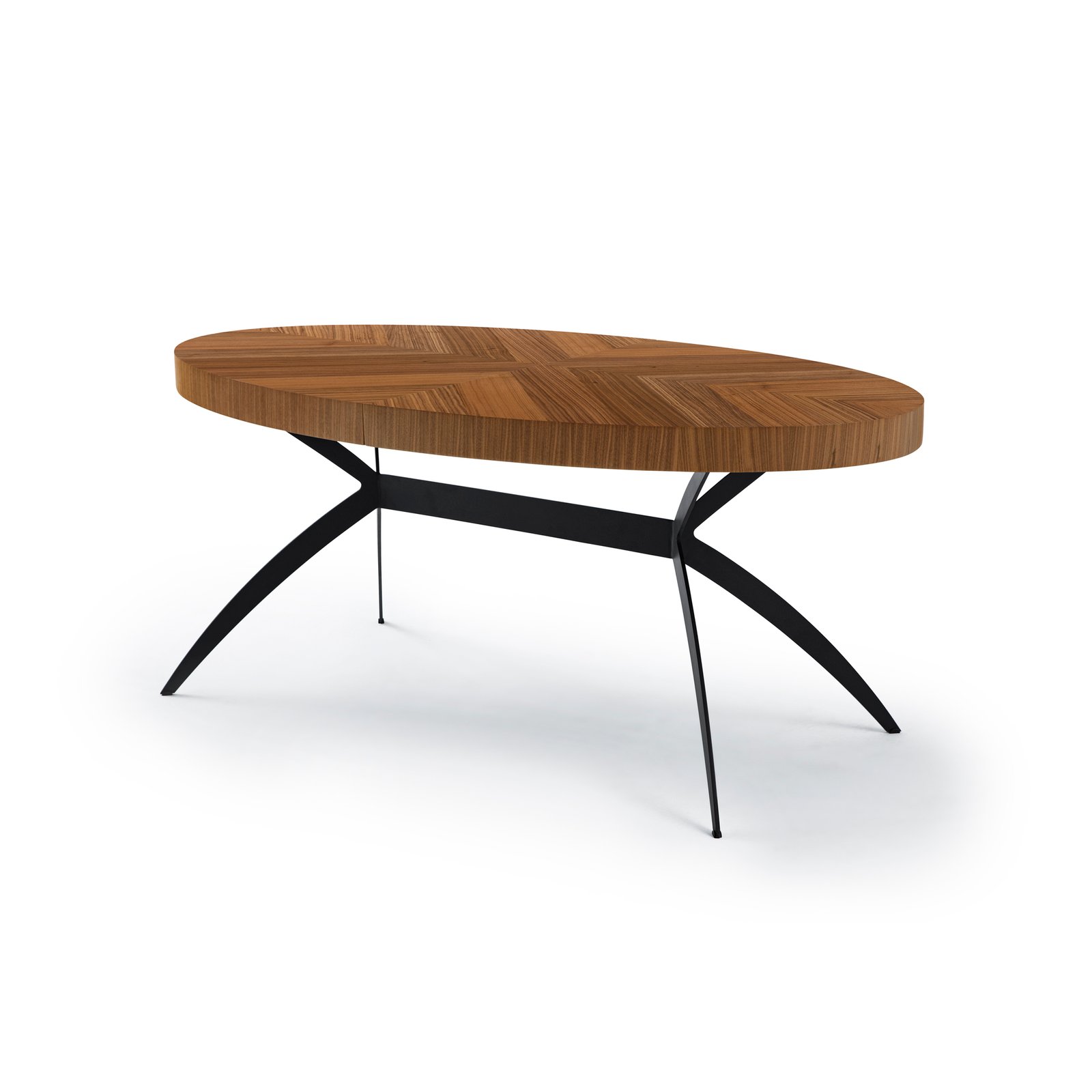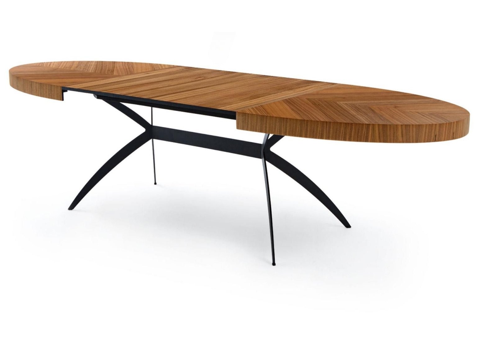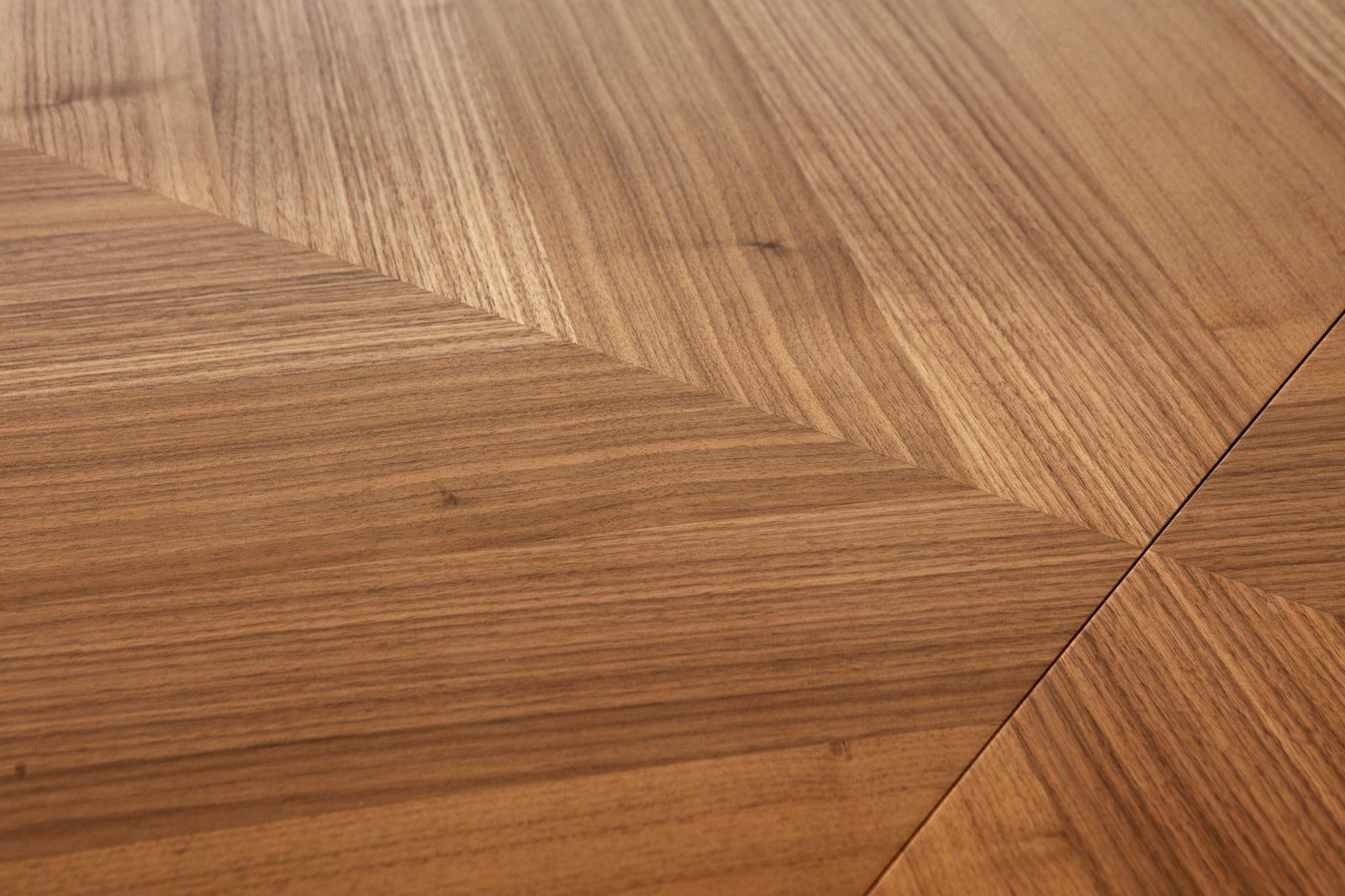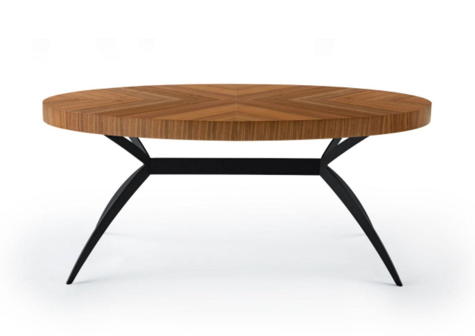 Išskirtinis dizainas ir praktiškumas susitinka stilingame valgomojo stale RODA. Tai ovalios formos išskleidžiamas stalas su unikaliu, natūralaus riešutmedžio atspalvio raštu, dengtu kokybiška faneruote, kuri suteikia stalui išskirtinį charakterį ir ilgaamžiškumą.