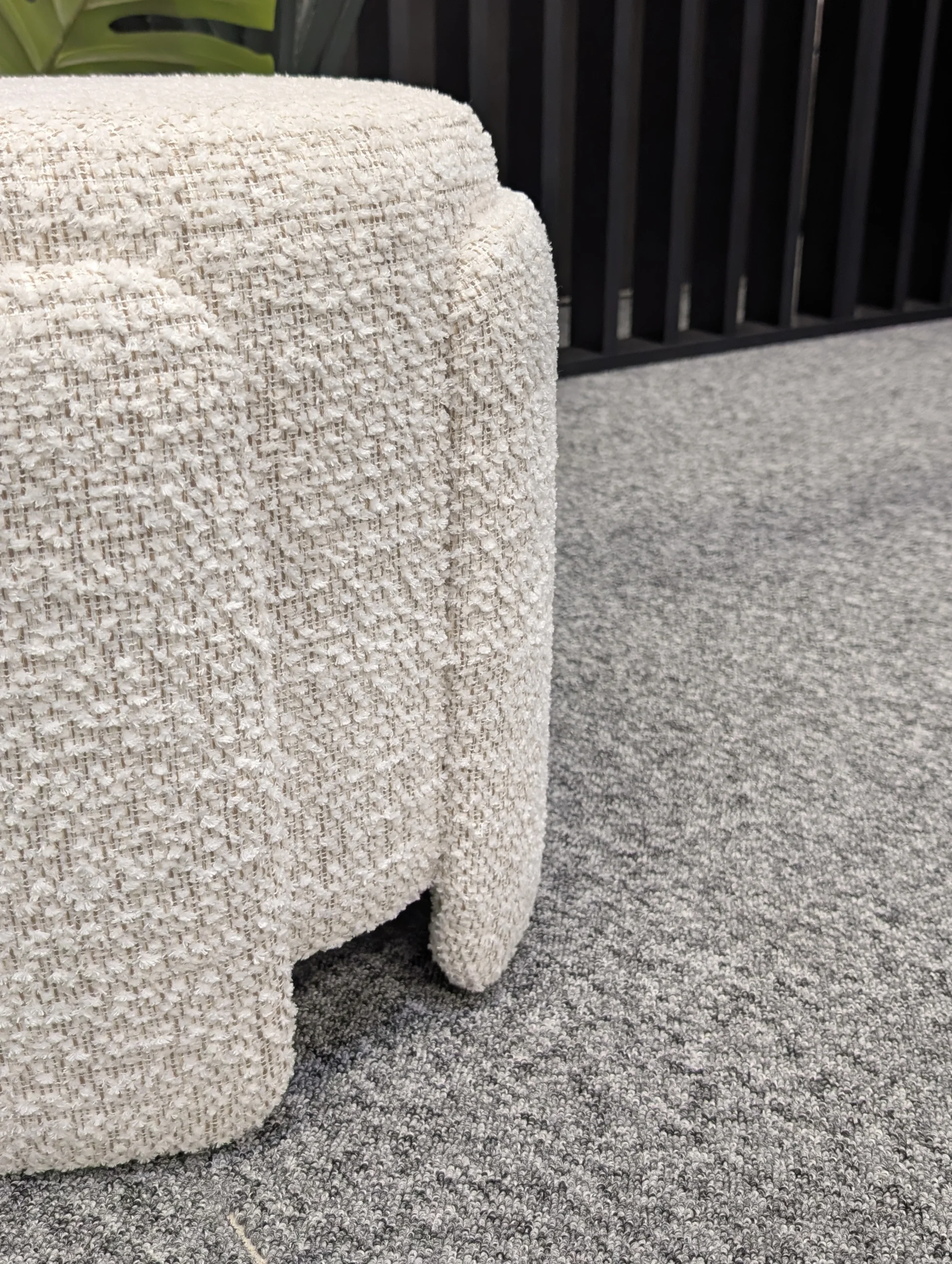 Šis stilingas pufas su unikaliu dizainu puikiai papildys jūsų interjerą. Jo apvalus viršus ir modernios, šiek tiek įtraukiančios šoninės dalys sukuria įdomų vizualinį efektą, kuris suteikia erdvei išskirtinumo. Minkštas audinys užtikrina komfortą, o jo struktūra padaro pufą tiek patogiu, tiek estetiškai patraukliu. Audinio spalvą galite lengvai pritaikyti pagal savo kambario stilių, nes yra galimybė pasirinkti iš įvairių spalvų variantų. Šis pufas puikiai tiks tiek svetainėje, tiek miegamajame ar kitose erdvėse, kuriose norite pridėti modernumo ir jaukumo.