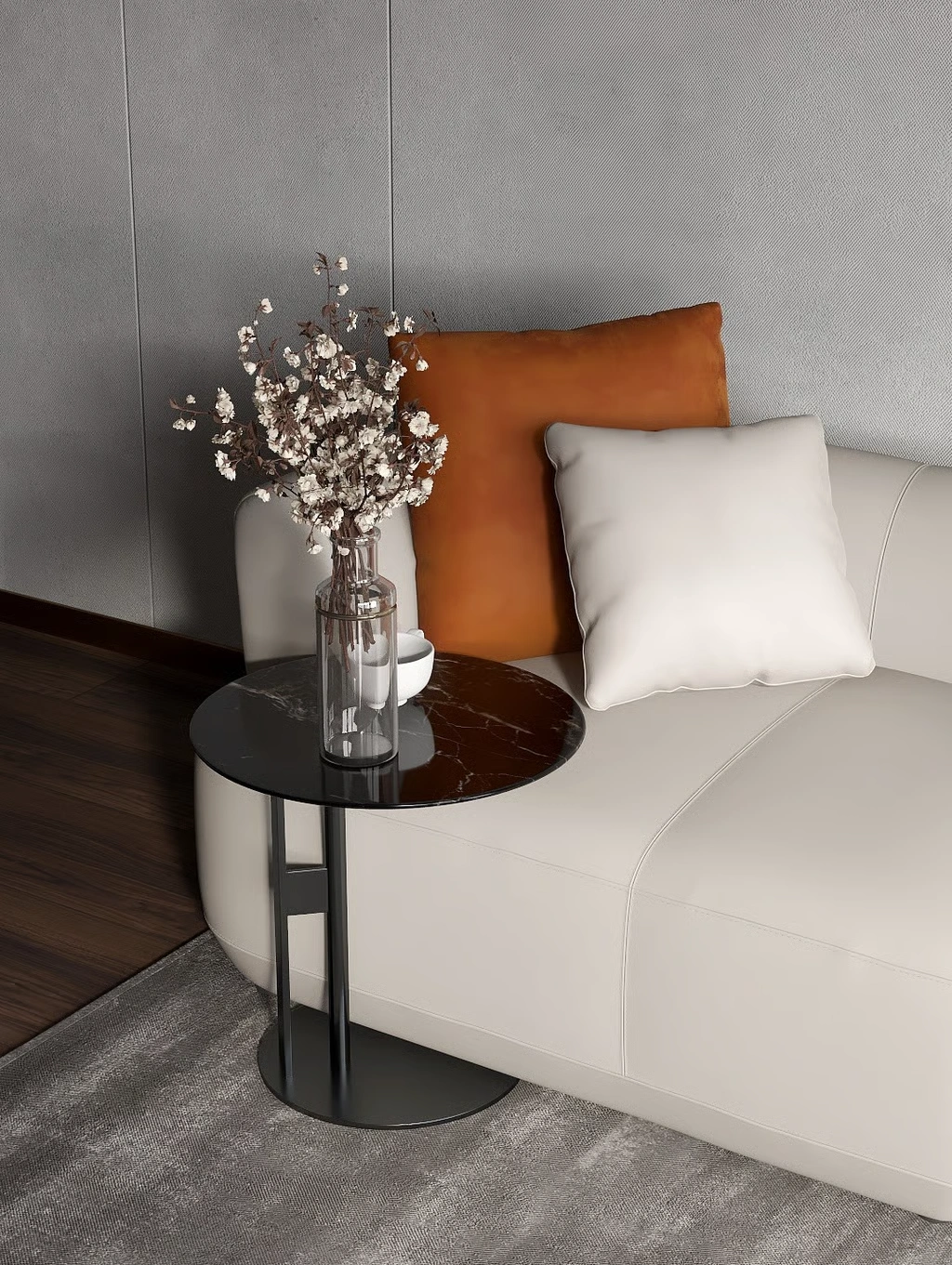 Šis stilingas staliukas yra išskirtinai sukurtas tiems, kurie vertina prabangą ir eleganciją. Pagamintas iš natūralaus Black Rose marmuro, jis suteikia prabangos jausmą ir tampa tikru jūsų interjero akcentu. Marmuro natūralios tekstūros ir unikalios raštai kiekvieną staliuką paverčia vienetiniu kūriniu. Staliuko rėmas pagamintas iš pilkos titano spalvos nerūdijančio plieno, kuris užtikrina tvirtumą ir ilgaamžiškumą, o kartu pridėdamas modernų ir minimalistinį akcentą.