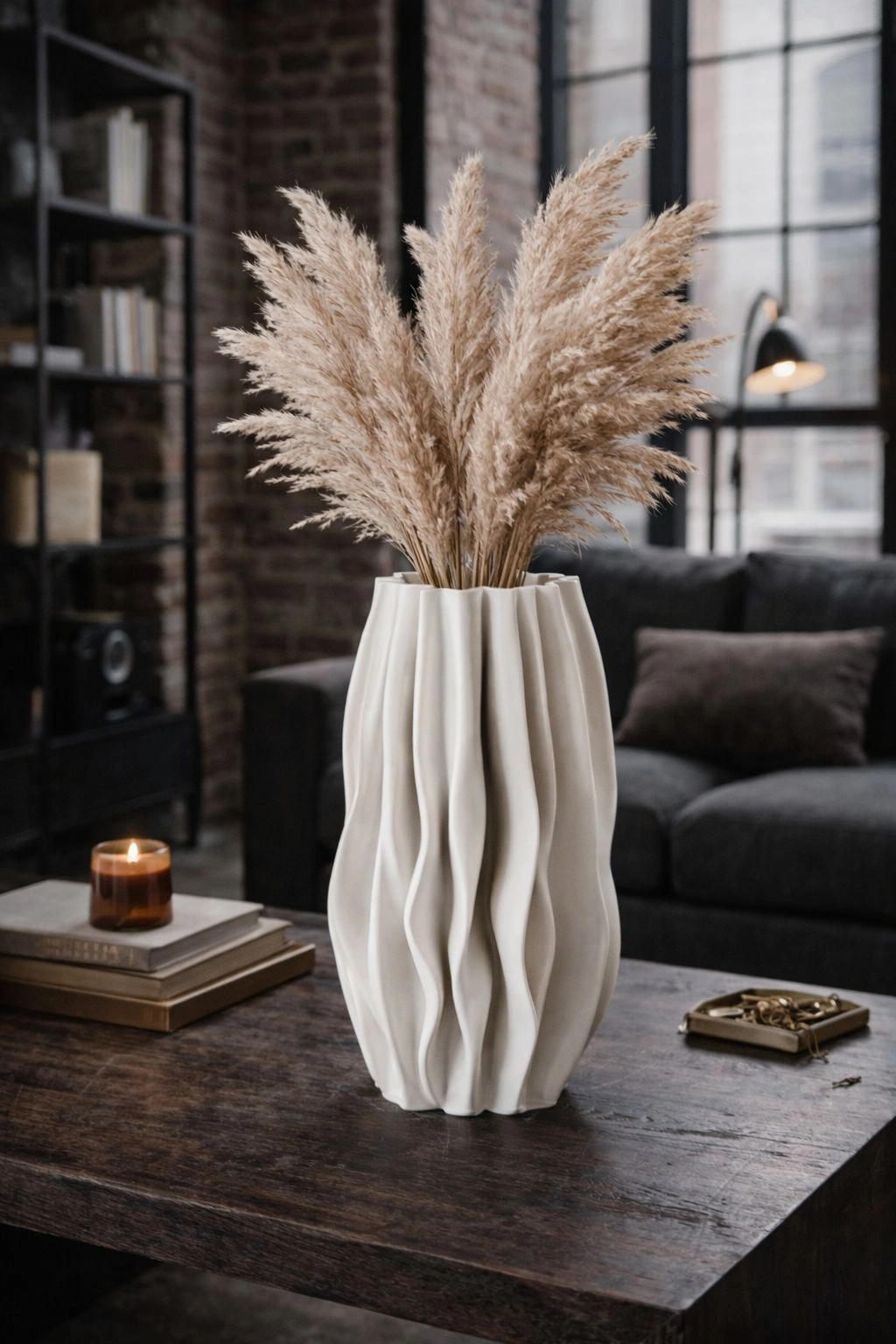 Išskirtinio dizaino vaza, primenanti lengvai krintančio audinio klostes, tampa tikru interjero akcentu. Organinės, banguojančios formos sukuria subtilų judesio įspūdį, o vertikalios tekstūros linijos suteikia paviršiui gylio ir elegancijos.