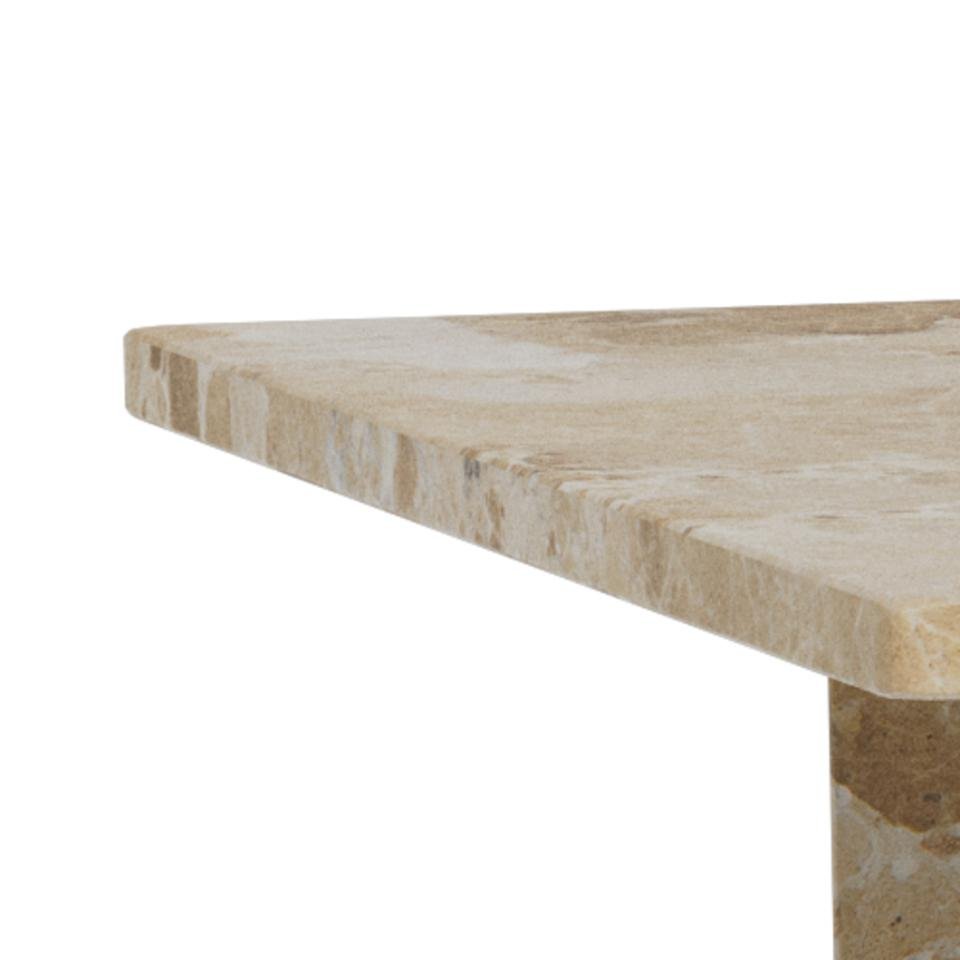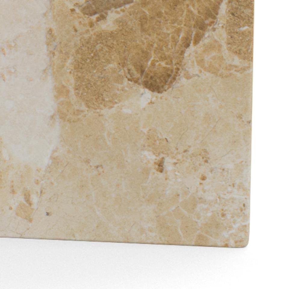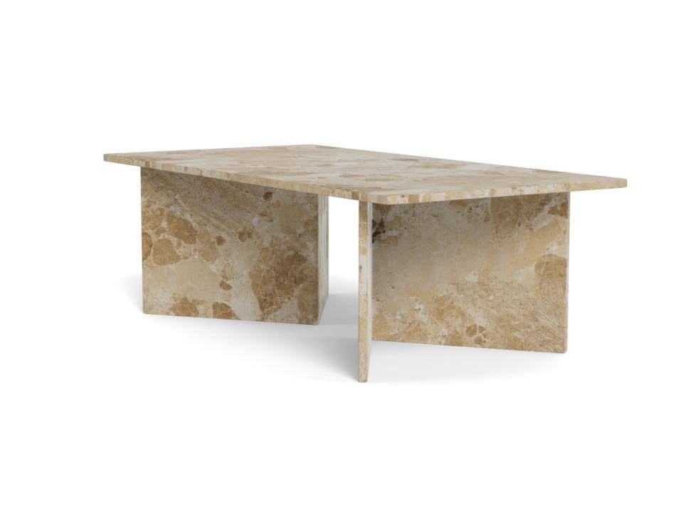 Pakvieskite nesenstančią eleganciją į savo svetainę su šiuo kavos staliuku. Stačiakampis stalviršis ir V formos pagrindas sukurti skulptūriškai švarios formos, kuri suteikia erdvei stabilumo. Pagamintas iš latte rudo marmuro, akmuo natūraliai pasižymi spalvos, struktūros ir paviršiaus įvairove, todėl kiekvienas staliukas yra unikalus. Tai išraiškingas baldas, kuris išlieka aktualus nepaisant besikeičiančių tendencijų.