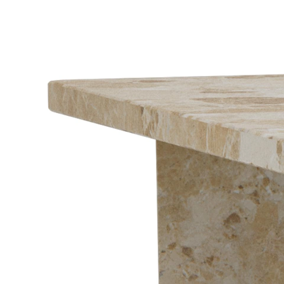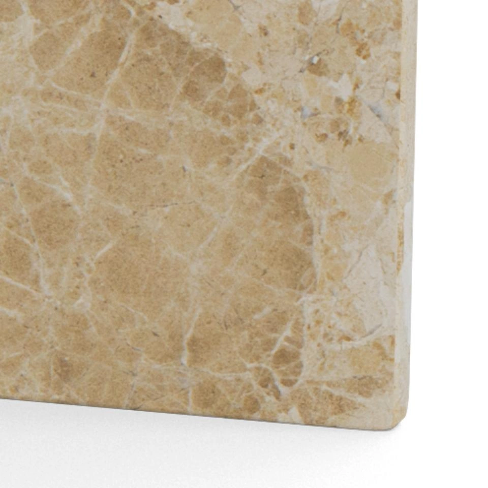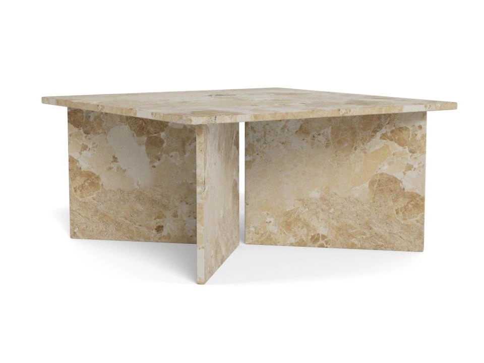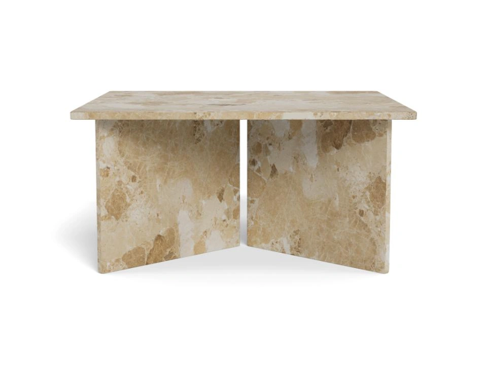 Pakvieskite nesenstančią eleganciją į savo svetainę su šiuo kavos staliuku. Kvadratinis stalviršis ir V formos pagrindas suformuoti į skulptūriškai švarią formą, kuri suteikia erdvei stabilumo. Pagamintas iš latte rudo marmuro, akmuo natūraliai pasižymi spalvos, struktūros ir paviršiaus įvairove, todėl kiekvienas staliukas yra unikalus. Tai išraiškingas baldas, kuris išlieka aktualus nepaisant besikeičiančių tendencijų.