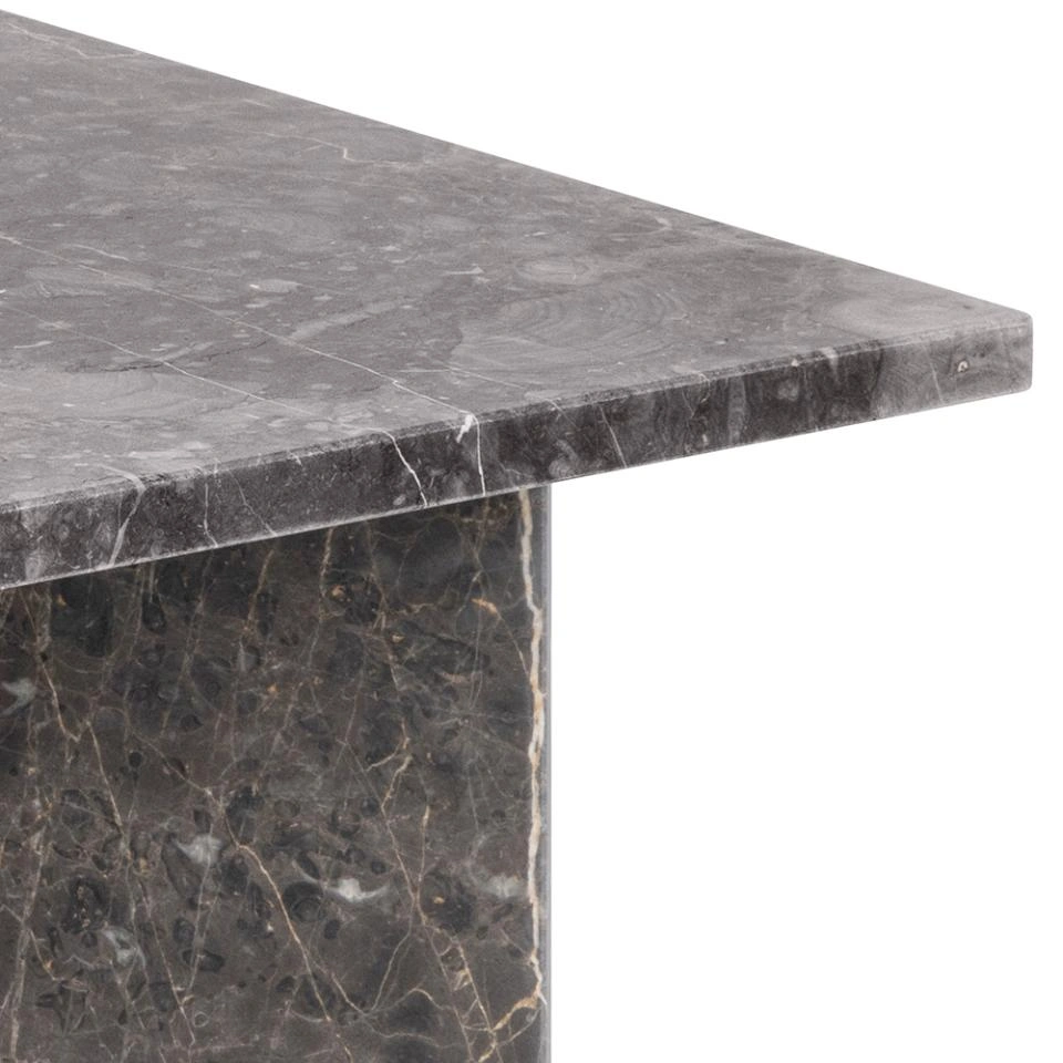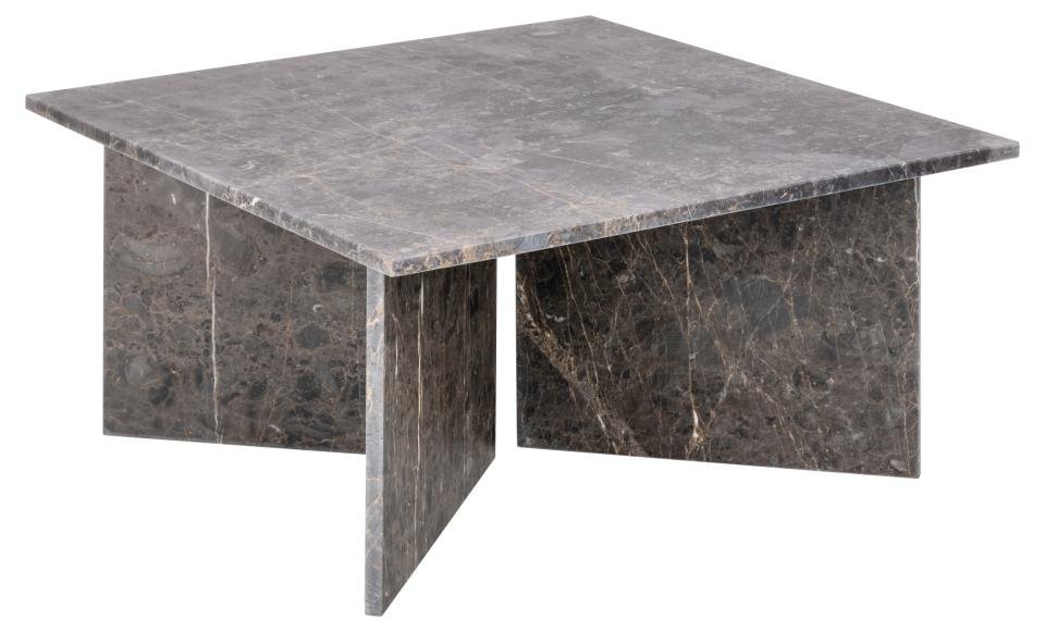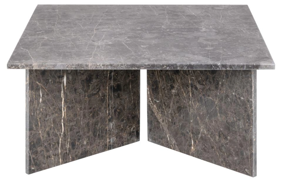 Pakvieskite nesenstančią eleganciją į savo svetainę su šiuo kavos staliuku. Kvadratinis stalviršis ir V formos pagrindas sukurti skulptūriškai švarios formos, kuri suteikia erdvei stabilumo. Pagamintas iš rudo marmuro su šviesiomis gyslomis, akmuo natūraliai pasižymi spalvos, struktūros ir paviršiaus įvairove, todėl kiekvienas staliukas yra unikalus. Tai išraiškingas baldas, kuris išlieka aktualus nepaisant besikeičiančių tendencijų.