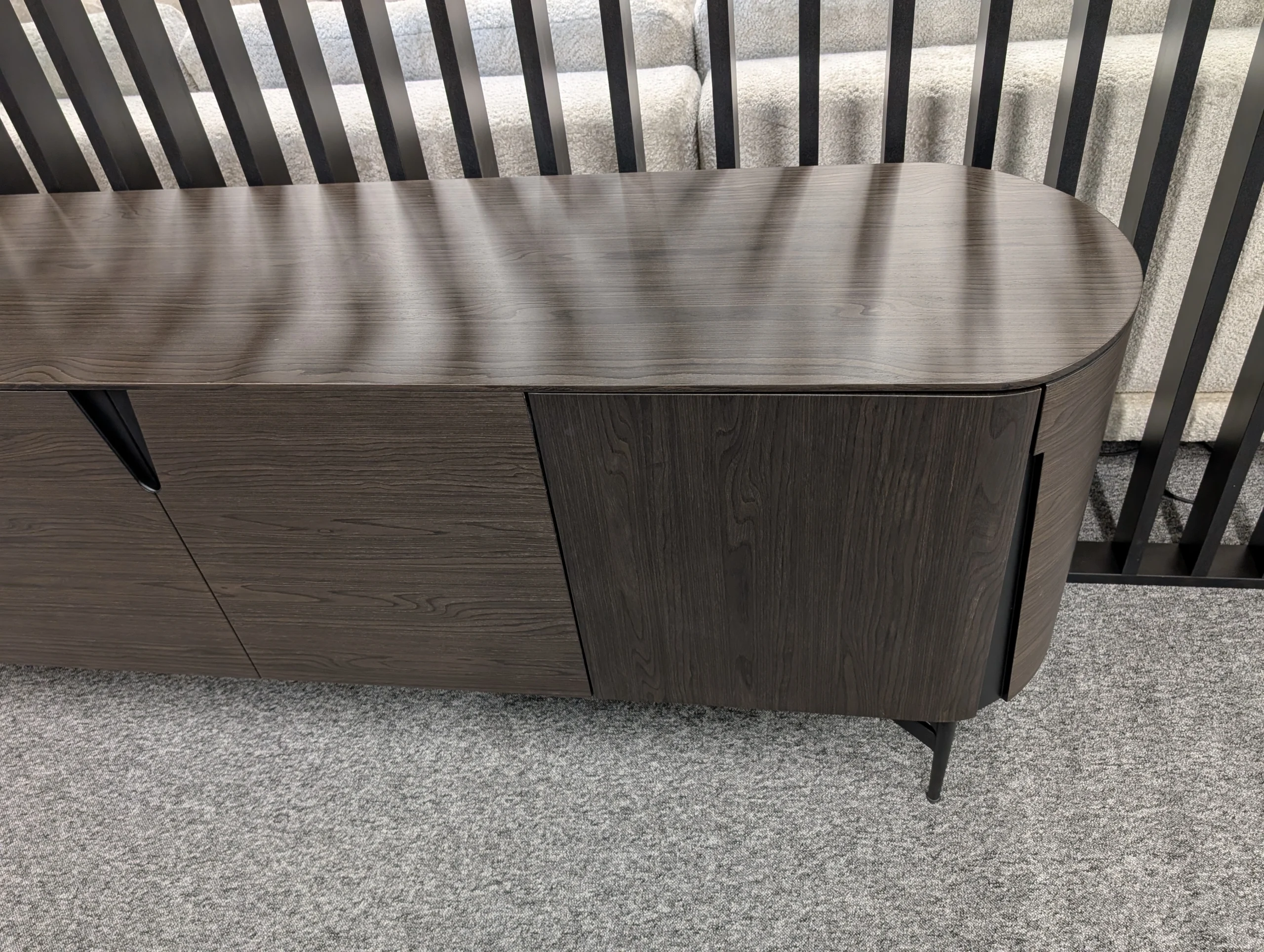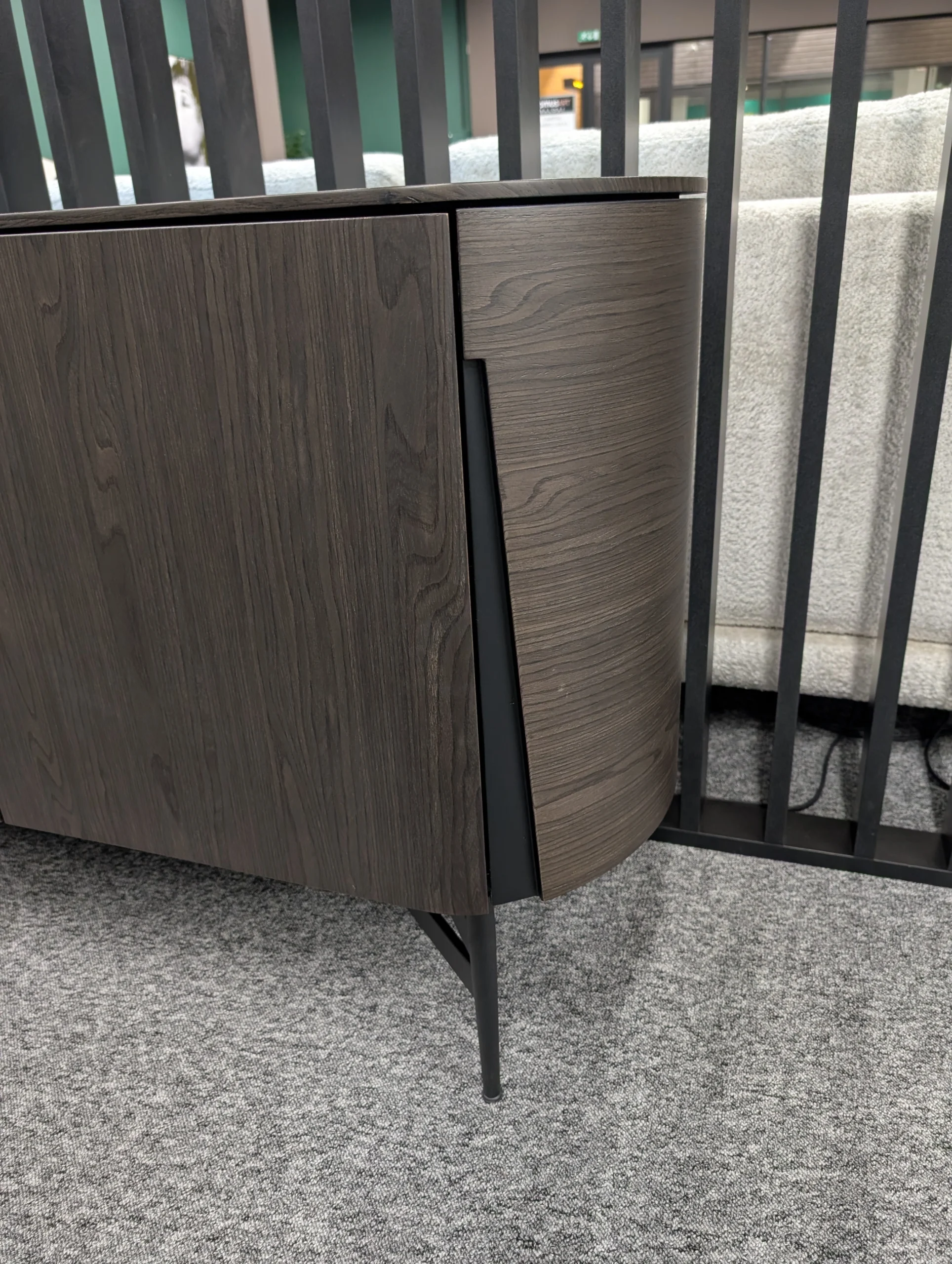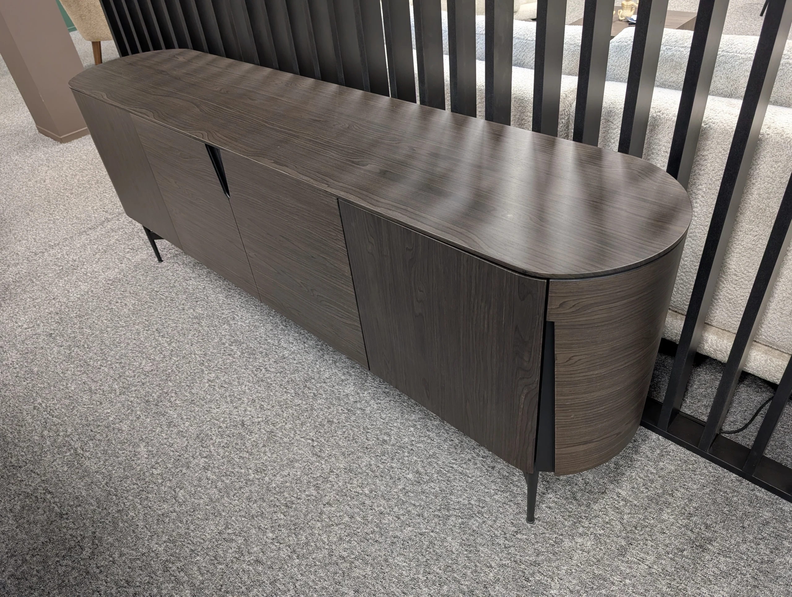 Stilinga ir funkcionali komoda VERONA – modernus baldas jūsų namams. Išskirtinis dizainas su švelniai suapvalintais šonais suteikia komodai elegancijos, o vientisa tamsaus medžio tekstūra kuria subtilų, natūralų įvaizdį.