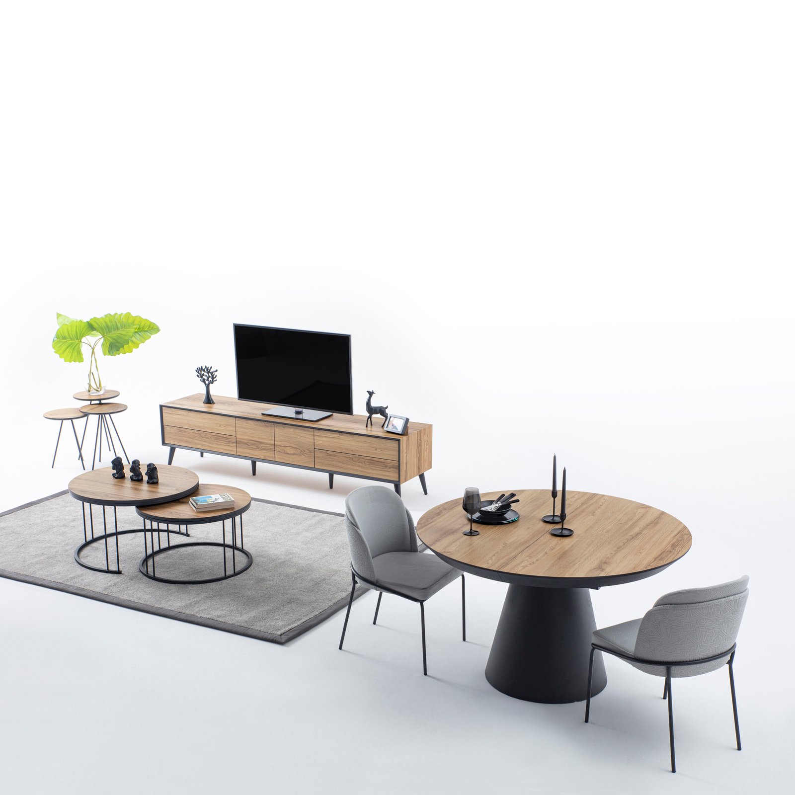 Atraskite stilingą ir funkcionalų sprendimą – apvalų stalą VIYANA, kuris subtiliai įsilieja tiek į modernų, tiek į klasikinį interjerą. Tai baldas, kuriame dera estetinė harmonija, stabilumas ir praktiškumas, todėl jis tampa puikiu pasirinkimu tiek jaukiems šeimos pusryčiams, tiek ypatingoms vakarienėms su svečiais.
