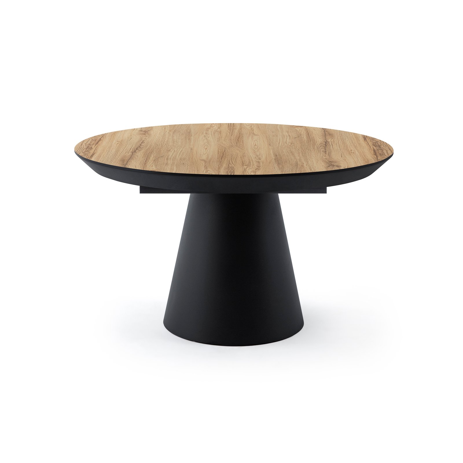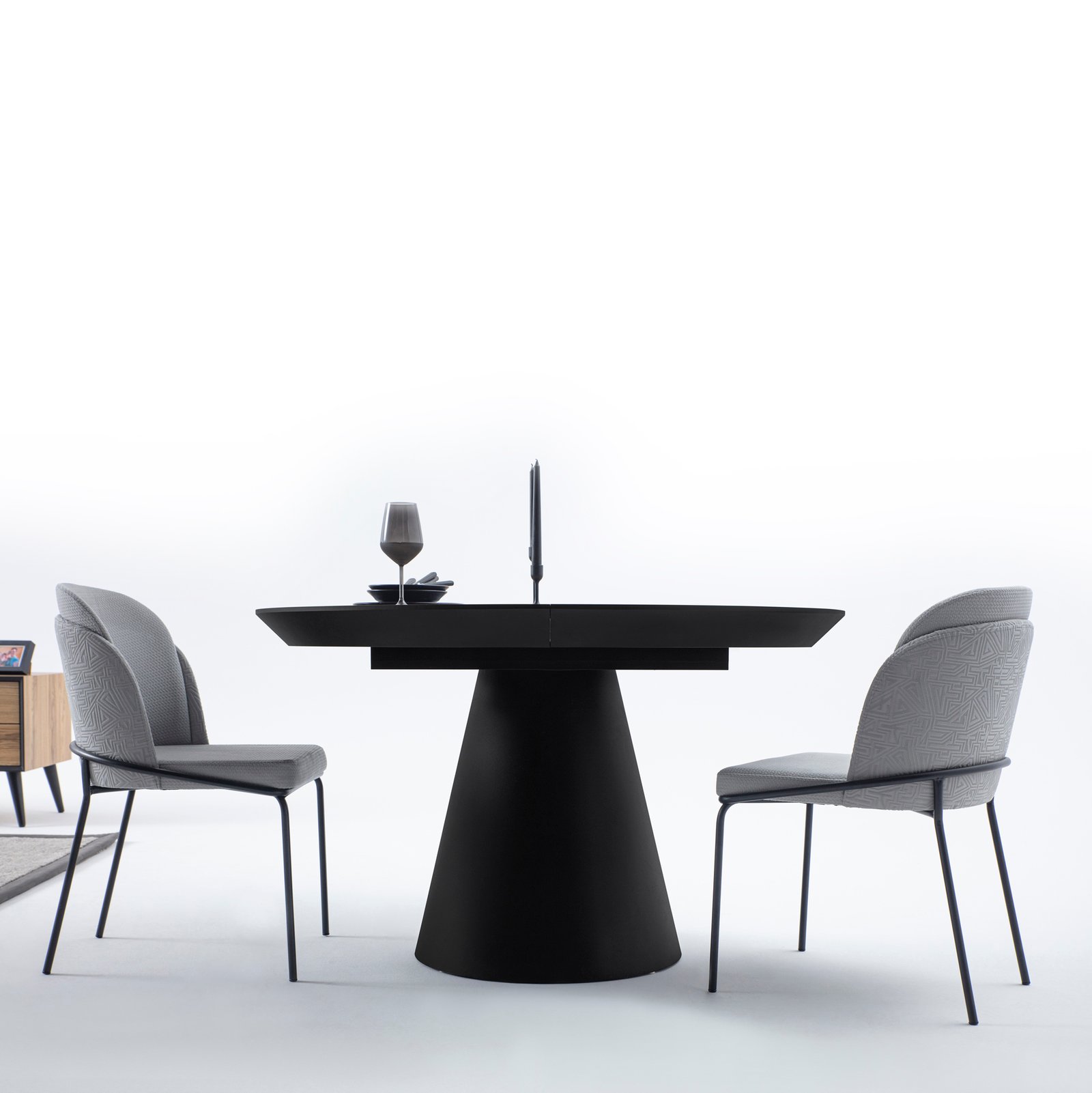 Stalas išsiskiria elegantiška apvalia forma, kuri sukuria malonią, bendrauti skatinančią atmosferą. Centrinė apvali stalo koja ne tik suteikia konstrukcijai tvirtumo, bet ir sukuria lengvumo bei išskirtinumo įspūdį – nėra kampų, trukdančių judėjimui ar kėdžių sustatymui, todėl sėdėti patogu iš bet kurios pusės.